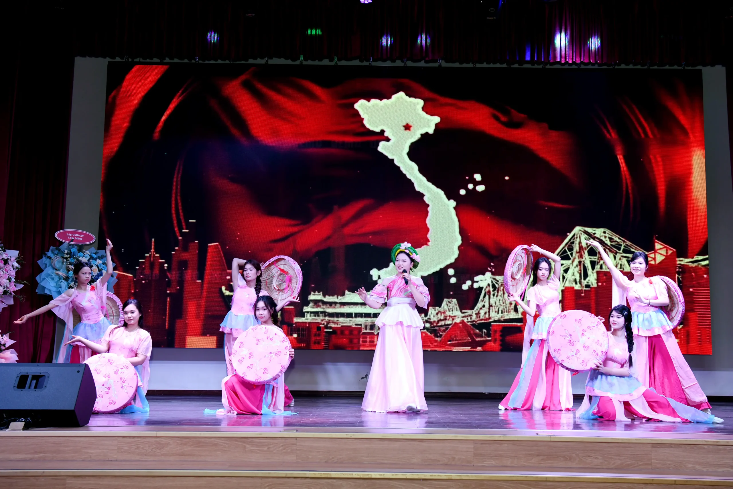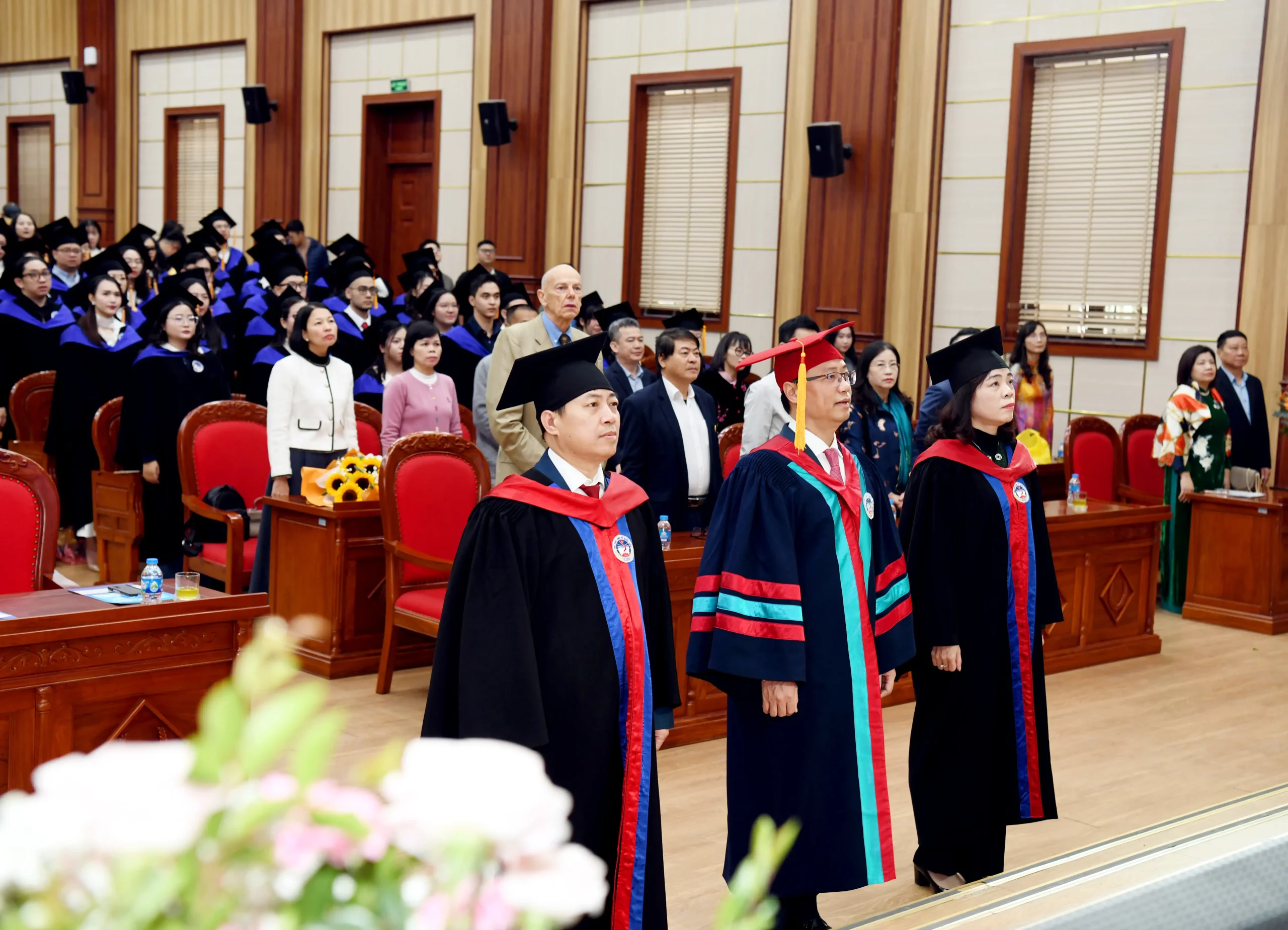 Đại diện tân thạc sĩ tặng hoa tri ân lãnh đạo Đại học Kinh tế Quốc dân và Viện Quản trị Kinh doanh