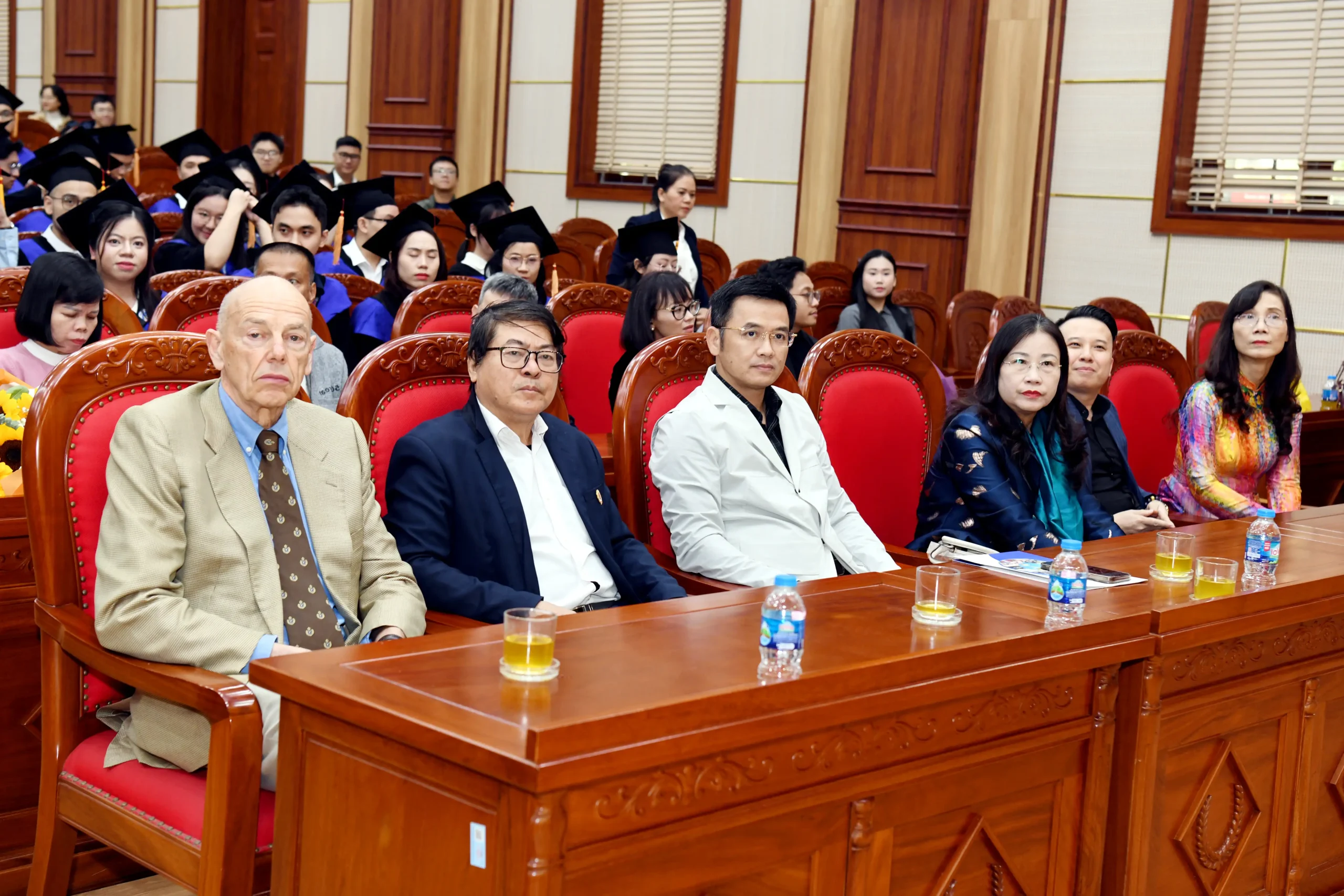 Tham dự buổi lễ có: PGS.TS Bùi Đức Thọ – Bí thư Đảng ủy, Chủ tịch Hội đồng Đại học; PGS.TS Lê Thị Lan Hương – Viện trưởng Viện Quản trị Kinh doanh; cùng đại diện lãnh đạo Trường, Phòng ban, Khoa, Viện, Trung tâm, các thầy cô giáo tham gia giảng dạy chương trình; và đặc biệt là sự có mặt của tân thạc sĩ chương trình E-MBA và V-MBA, cùng gia đình, người thân, bạn bè và đồng nghiệp.