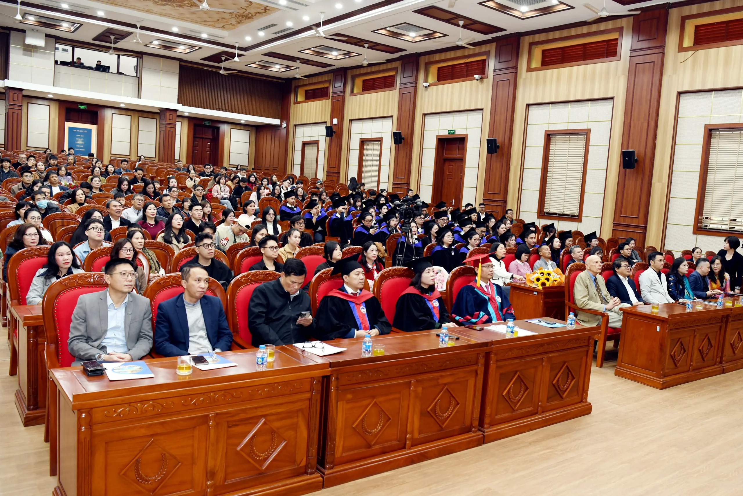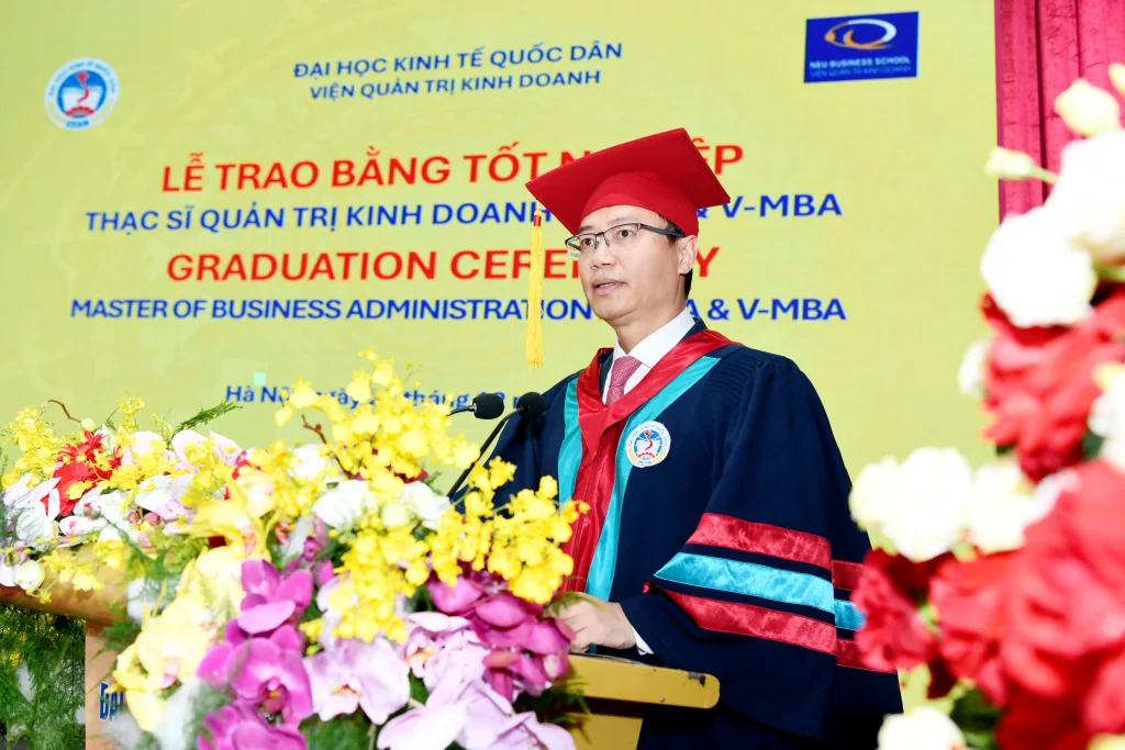 Chúc mừng các tân thạc sĩ đã nỗ lực học tập và rèn luyện để hoàn thành chương trình đào tạo, PGS.TS Bùi Đức Thọ khẳng định những thành quả đạt được hôm nay là kết tinh của một quá trình kiên trì vượt qua nhiều thử thách trong hành trình chinh phục tri thức tại Đại học Kinh tế Quốc dân. Với nền tảng kiến thức chuyên môn, kỹ năng mềm và tư duy quản trị hiện đại được trang bị tại Viện Quản trị Kinh doanh, Chủ tịch Hội đồng Đại học bày tỏ tin tưởng các tân thạc sĩ sẽ tiếp tục phát huy năng lực, đóng góp tích cực cho doanh nghiệp và xã hội, đồng thời vận dụng hiệu quả tri thức đã tích lũy vào thực tiễn, từng bước khẳng định bản thân trên cương vị những chuyên gia, nhà quản lý, lãnh đạo doanh nghiệp hoặc những người khởi nghiệp thành công.