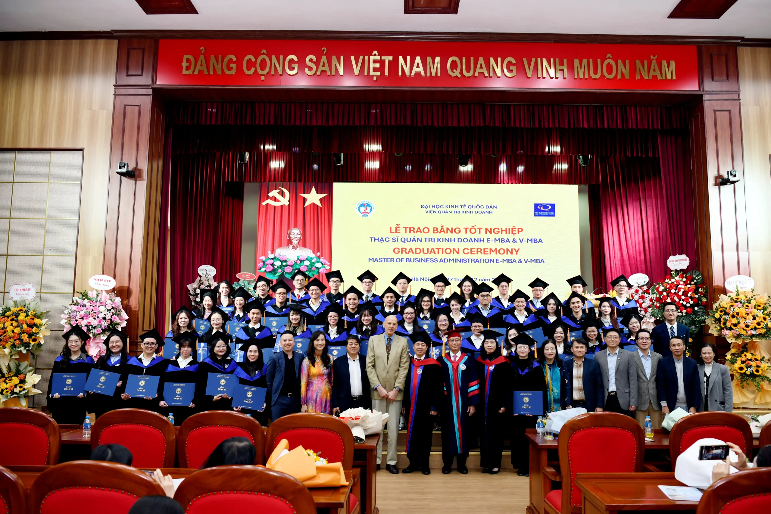 Chiều ngày 27/12/2025, Viện Quản trị Kinh doanh, Đại học Kinh tế Quốc dân đã tổ chức Lễ trao bằng tốt nghiệp thạc sĩ quản trị kinh doanh E-MBA và V-MBA.