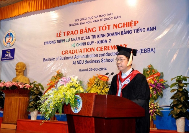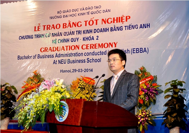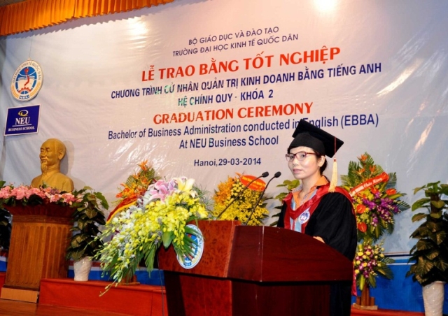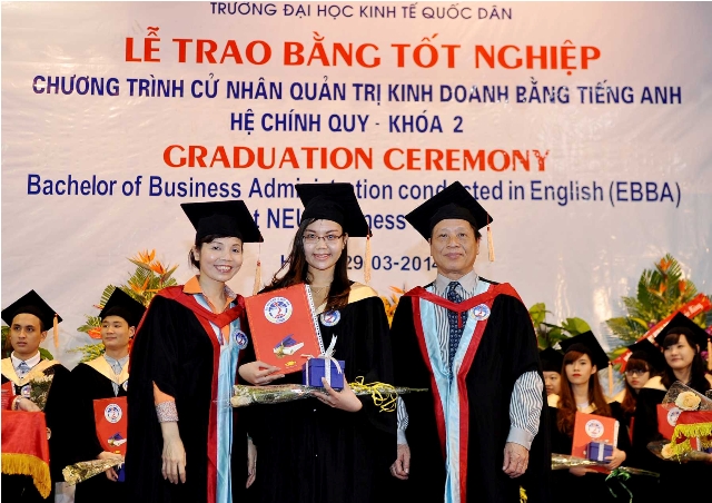 Sáng ngày 29/03/2014, Trường Đại học Kinh tế Quốc dân đã long trọng tổ chức lễ trao bằng cho 96 sinh viên Chương trình Cử nhân QTKD bằng tiếng Anh (E-BBA) Khóa 2 (2010-2014).