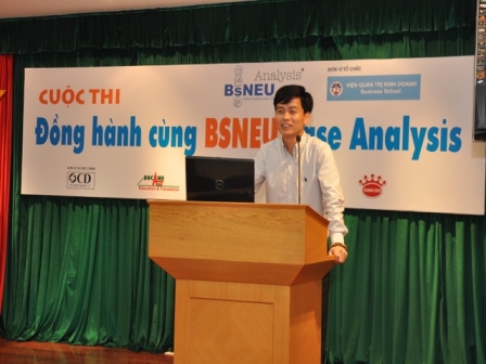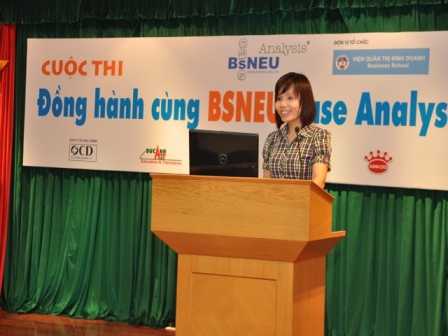 Đồng hành cùng BSNEU Case Analysis 2012 là một cuộc thi được tổ chức hàng năm bởi Viện Quản trị Kinh doanh – ĐH KTQD dành cho các sinh viên của các trường đại học tại Hà Nội. Các nhóm sinh viên đại học tham gia cuộc thi sẽ phải áp dụng các kiến thức và kỹ năng của mình để giải quyết và xử lý các tình huống kinh doanh thực tế của các doanh nghiệp tại Việt Nam.