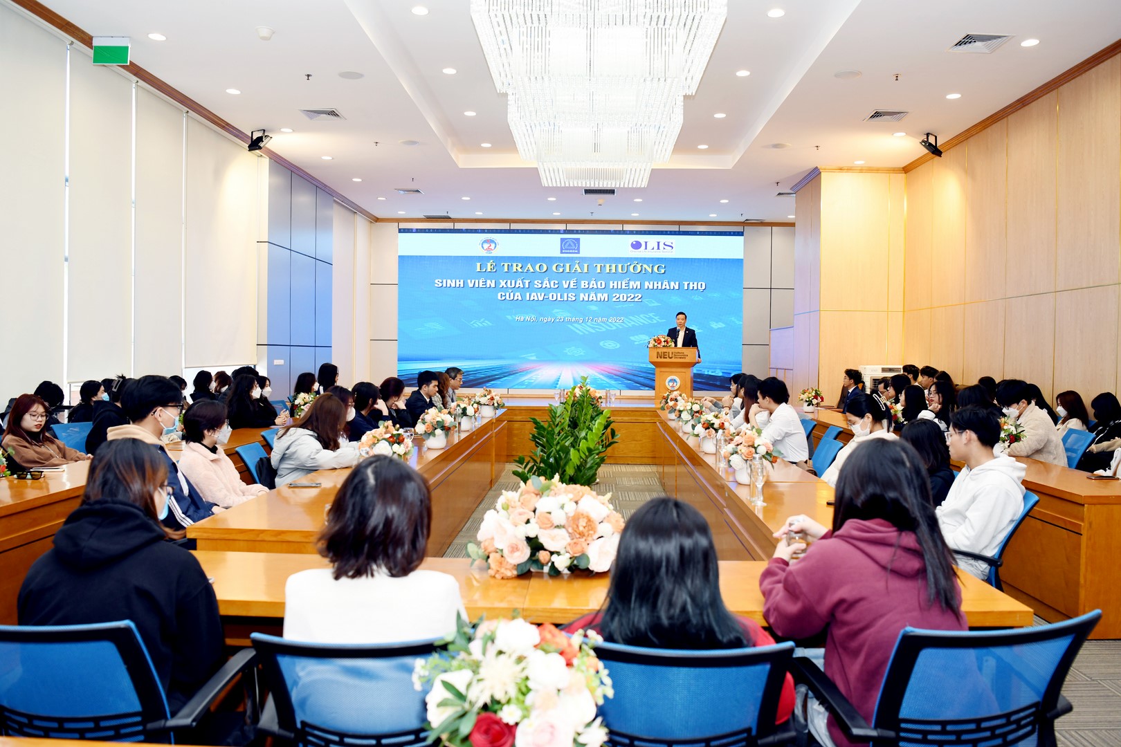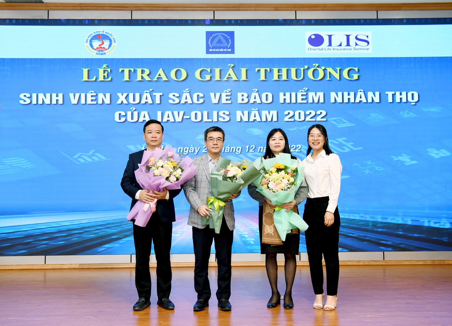Sáng ngày 23/12/2022, Trường Đại học Kinh tế Quốc dân phối hợp với Hiệp hội Bảo hiểm Việt Nam tổ chức Lễ trao giải thưởng sinh viên xuất sắc về bảo hiểm nhân thọ của IAV-OLIS năm 2022 dành cho sinh viên khoa Bảo hiểm.