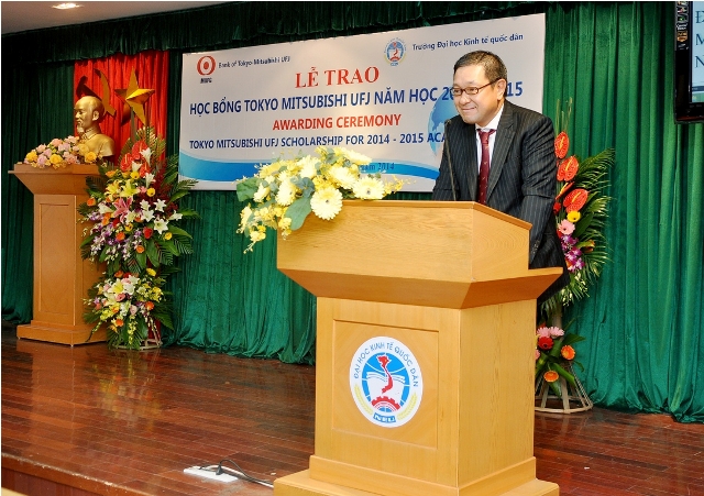 Phát biểu tại buổi lễ, Ông Yasuo Matsuyama Trưởng khu vực tại Việt Nam và Giám đốc chi nhánh Hà Nội gửi lời cảm ơn trân trọng tới sự hợp tác quý báu của ĐH Kinh tế Quốc dân cho sự thành công của chương trình học bổng mà Quỹ Tokyo Mitsubishi UFJ thực hiện từ năm 1994. Ông bày tỏ sự tin tưởng trong số những sinh viên đạt học bổng của Quỹ, rất nhiều bạn trong trương lai sẽ giữ những chức vụ quan trọng của Nhà nước và các doanh nghiệp, góp phần to lớn trong công cuộc phát triển đất nước.