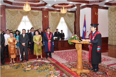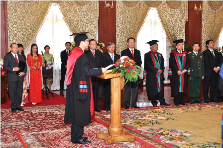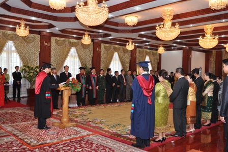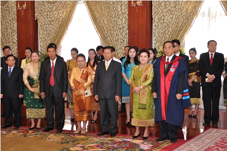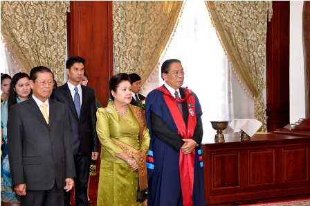 Buổi lễ trao tặng danh hiệu Tiến sỹ danh dự cho Ngài Choummaly  SAYASONE  đã được tổ chức trọng thể sáng ngày 28/8/2013 tại Phủ Chủ tịch,Thủ đô Viêng Chăn, nước Cộng hòa Dân chủ Nhân dân Lào.