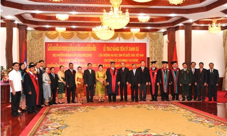 Lễ trao tặng danh hiệu Tiến sỹ danh dự cho Ngài Choummaly SAYASONE – Tổng Bí thư BCH Trung ương Đảng nhân dân cách mạng Lào, Chủ tịch nước Cộng hòa Dân chủ Nhân dân Lào đã thành công tốt đẹp