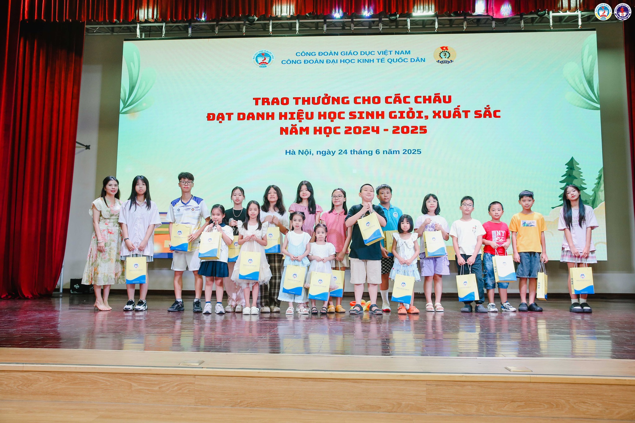 Sáng ngày 24/6/2025, Đại học Kinh tế Quốc dân đã tổ chức Lễ trao thưởng cho các cháu học sinh giỏi con viên chức và người lao động năm học 2024-2025 và chào mừng ngày Gia đình Việt Nam 28/6.