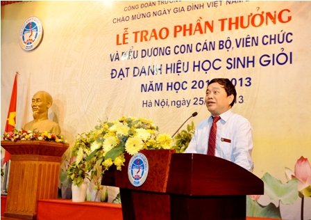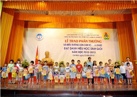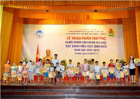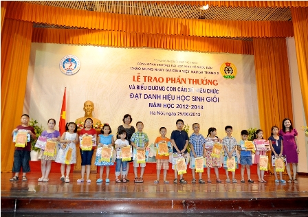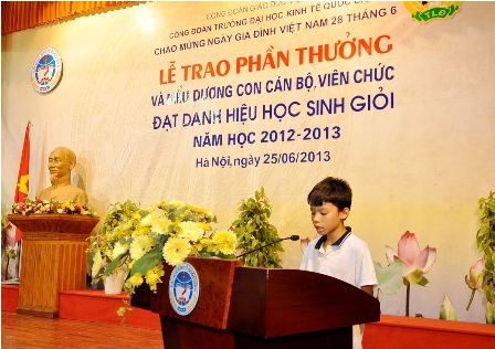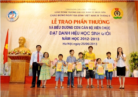 Hưởng ứng ngày Hội “Gia đình Việt Nam 28 tháng 6” do Bộ Văn hoá, Thể thao và Du lịch phát động và thực hiện kế hoạch hàng năm chăm sóc thiếu niên nhi đồng của Công đoàn trường; được sự quan tâm, tạo điều kiện của Đảng uỷ, Lãnh đạo Trường, ngày 24 tháng 6 năm 2013, tại Hội trường A, Ban Chấp hành Công Đoàn trường đã tổ chức Lễ Tuyên dương và trao thưởng cho học sinh giỏi, học sinh xuất sắc là con cán bộ giáo viên, viên chức của trường năm học 2012-2013.