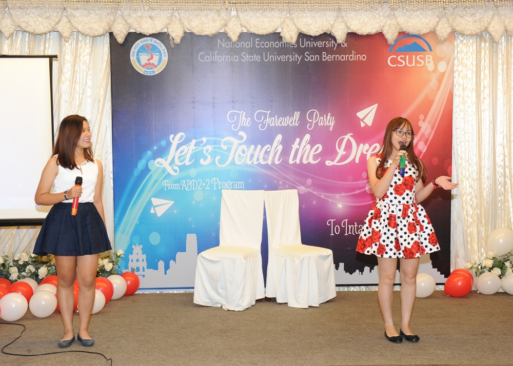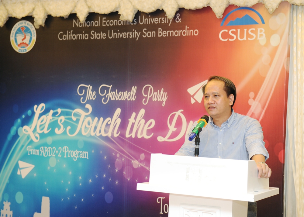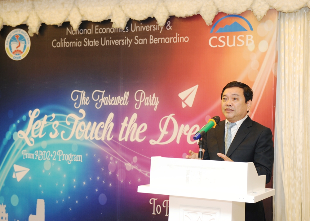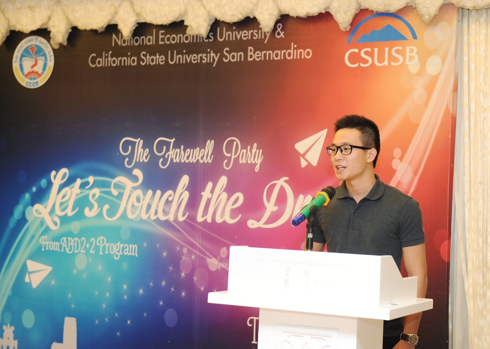 Tối ngày 16 tháng 9 năm 2015 tại Nhà hàng Long Vĩ Palace, Trường ĐHKTQD đã tổ chức Đêm chia tay sinh viên Chương trình Du học Mỹ ABD 2+2 khóa 2 chuyển tiếp sang Hoa Kỳ để học tiếp 2 năm trong chương trình đào tạo. Đây là chương trình hợp tác giữa Đại học Kinh tế Quốc dân và Đại học Tổng hợp California, San Bernardino, Hoa Kỳ theo phương thức 2+2 (2 năm đầu học tại Đại học KTQD và 2 năm còn lại học tại Đại học Tổng hợp California, San Bernardino).