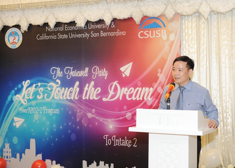 Phát biểu tại buổi lễ, GS. TS Trần Thọ Đạt đánh giá cao chương trình hợp tác đào tạo ABD2+2 và chúc mừng thành công của chương trình trong 4 năm vừa qua. GS.TS Trần Thọ Đạt cũng gửi lời chúc mừng các em đã hoàn thành một nửa chặng đường và nhấn mạnh tầm quan trọng của việc học tập 2 năm cuối tại CSUSB. Thầy căn dặn các em cần cố gắng hơn nữa trong chặng đường khó khăn sắp tới; cho dù bất kỳ hoàn cảnh nào, có khó khăn đến đâu cũng phải quyết tâm với nỗ lực cao nhất và luôn giữ được hình ảnh đẹp của sinh viên ĐHKTQD trong con mắt bạn bè quốc tế.