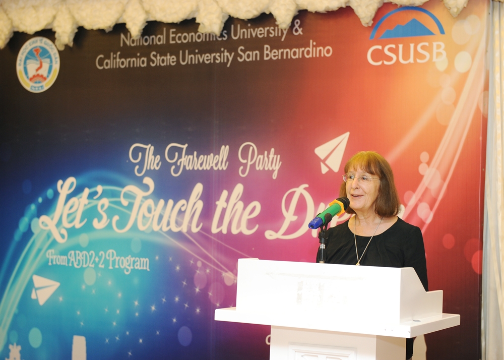 Về phía trường ĐH San Bernardino, TS. Helen Huntley đánh giá cao nỗ lực học tập của các sinh viên trong 2 năm tại ĐH KTQD. Nhắc nhở sinh viên phải cố gắng nỗ lực trong 2 năm tới tại CSUSB.
