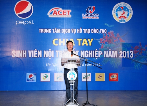 Tiếp tục thực hiện các hoạt động nằm trong Kế hoạch Công tác năm học và được sự đồng ý của Ban giám hiệu, Trung tâm Dịch vụ Hỗ trợ đào tạo đã tổ chức buổi liên hoan chia tay dành cho Sinh viên nội trú học năm cuối. Buổi chia tay diễn ra trong bầu không khí ấm áp, thân thiện như các thành viên trong một gia đình. Đến tham dự buổi liên hoan chia tay về phía Nhà trường có GS. TS. Phạm Quang Trung- Phó Hiệu trưởng, TS. Lê Anh Tuấn- TP CTCT và QLSV, TS.Cấn Anh Tuấn- Giám đốc TTDV và HTĐT cùng lãnh đạo một số đơn vị, ĐTN, HSV và về phía khách mời có đại diện các nhà tài trợ.