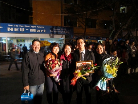 Buổi sáng là Lễ trao chứng nhận Giáo sư và Phó giáo sư mà thầy Hoàng Văn Hoa, Viện trưởng của Viện là một trong hai nhà giáo của ngành Kinh tế trong cả nước được vinh dự nhận danh hiệu cao quý: Giáo sư của ngành Kinh tế năm 2012. Buổi lễ trang trọng diễn ra tại Văn Miếu Quốc tử Giám – địa danh lịch sử với truyền thống vẻ vang nhất tôn vinh các học giả Việt Nam từ ngàn xưa. Niềm vinh dự này sẽ thúc đẩy các giảng viên trẻ của Viện có thêm động lực phấn đấu cho con đường sự nghiệp của mình, đóng góp vào sự phát triển của Viện và của Trường.