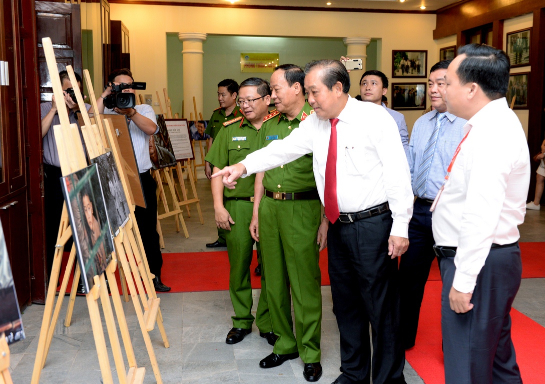 Phó Thủ tướng Trương Hòa Bình tại khu vực trưng bày hình ảnh của Mít tinh