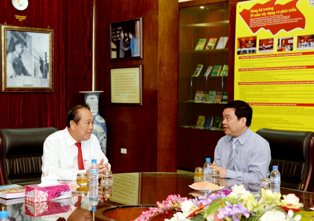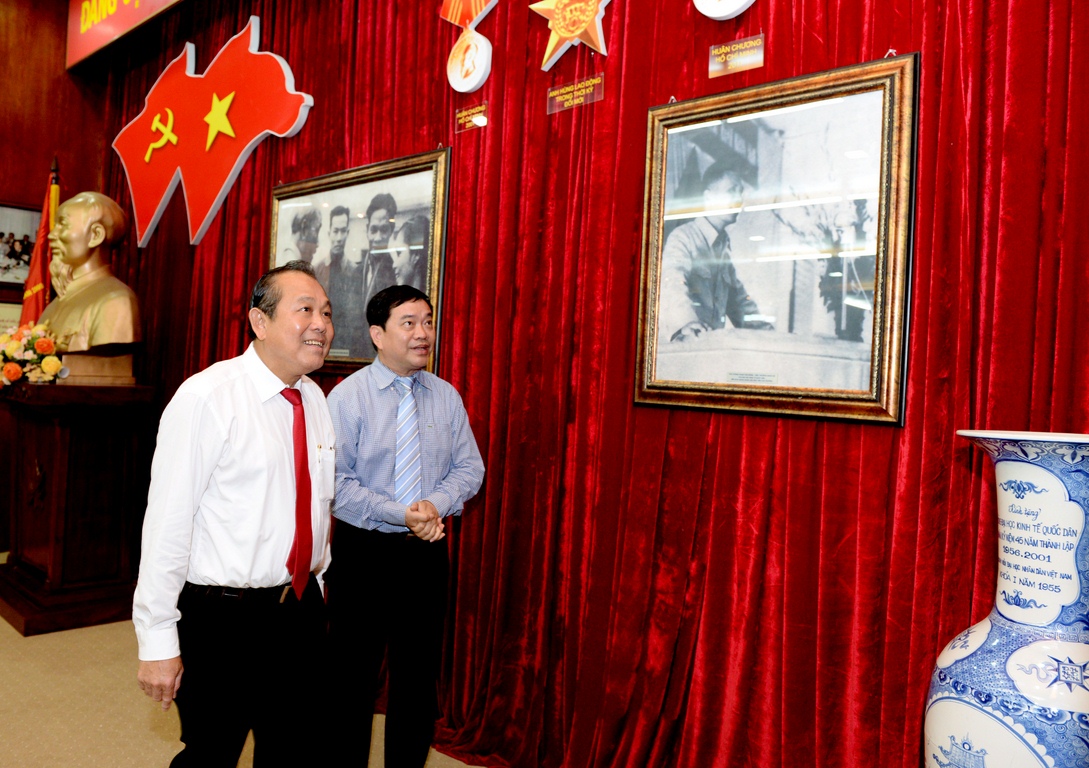 Phó Thủ tướng Trương Hòa Bình thăm phòng truyền thống của Trường ĐH KTQD