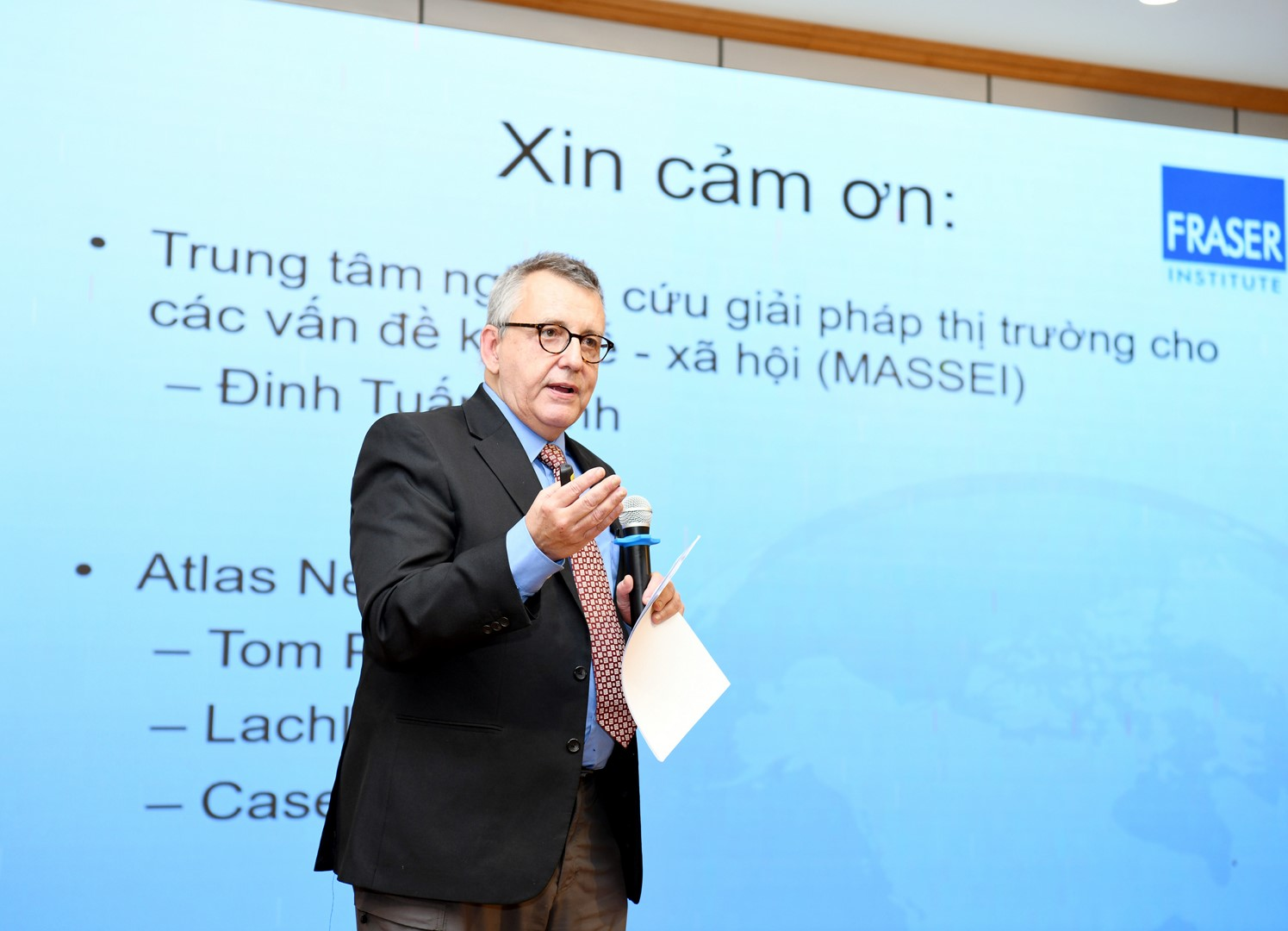Sáng 01/3/2023, Trường Đại học Kinh tế Quốc dân phối hợp cùng Fraser Institute (Canada) tổ chức buổi Toạ đàm Đối thoại chính sách: “Đổi mới thể chế kinh tế tại Việt Nam, hướng tới nước thu nhập có trung bình cao trước năm 2030” nhằm phát hiện những nút thắt về thể chế kinh tế thị trường và đề xuất chính sách nhằm giúp Việt Nam tiếp tục duy trì được đà tăng trưởng khi trở thành nước có thu nhập trung bình cao. Tọa đàm quy tụ các chuyên gia hàng đầu của Việt Nam và quốc tế thảo luận về thể chế, chính sách và các điểm nghẽn trong nền kinh tế Việt Nam.