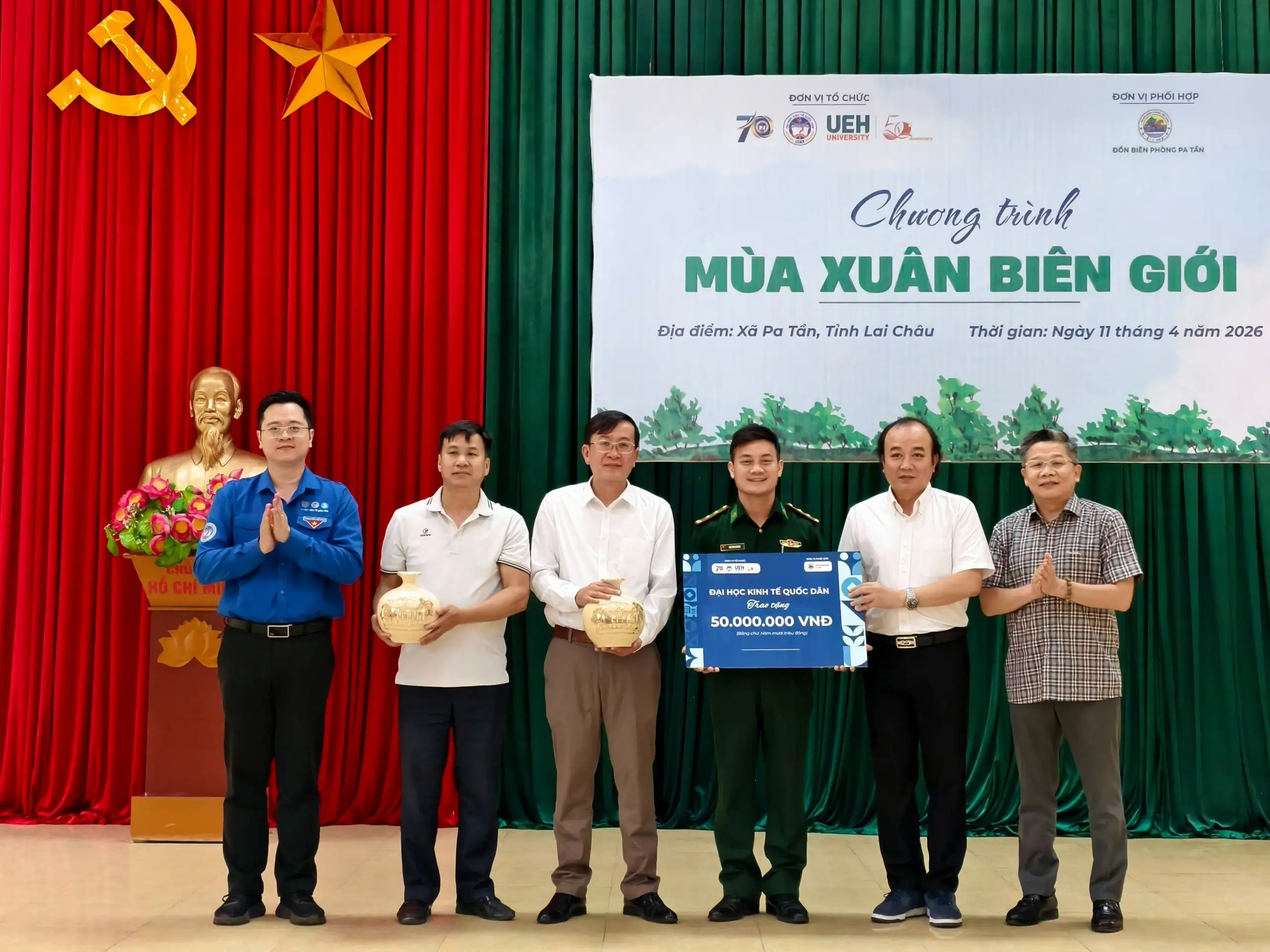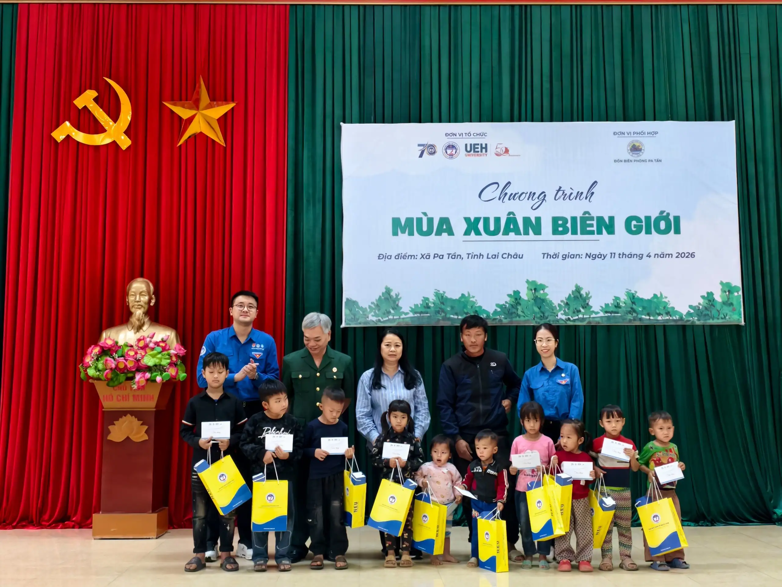 Trong không khí hào hùng của những ngày tháng Tư lịch sử, hướng tới kỷ niệm 51 năm Ngày Giải phóng miền Nam, thống nhất đất nước (30/4/1975 – 30/4/2026), đồng thời chào mừng những dấu mốc phát triển quan trọng của hai cơ sở đào tạo kinh tế hàng đầu – 70 năm thành lập Đại học Kinh tế Quốc dân và 50 năm thành lập Đại học Kinh tế TP. Hồ Chí Minh – chương trình “Mùa xuân biên giới” đã được tổ chức, mang theo những giá trị nhân văn và tinh thần sẻ chia đến với xã biên giới Pa Tần, tỉnh Lai Châu.