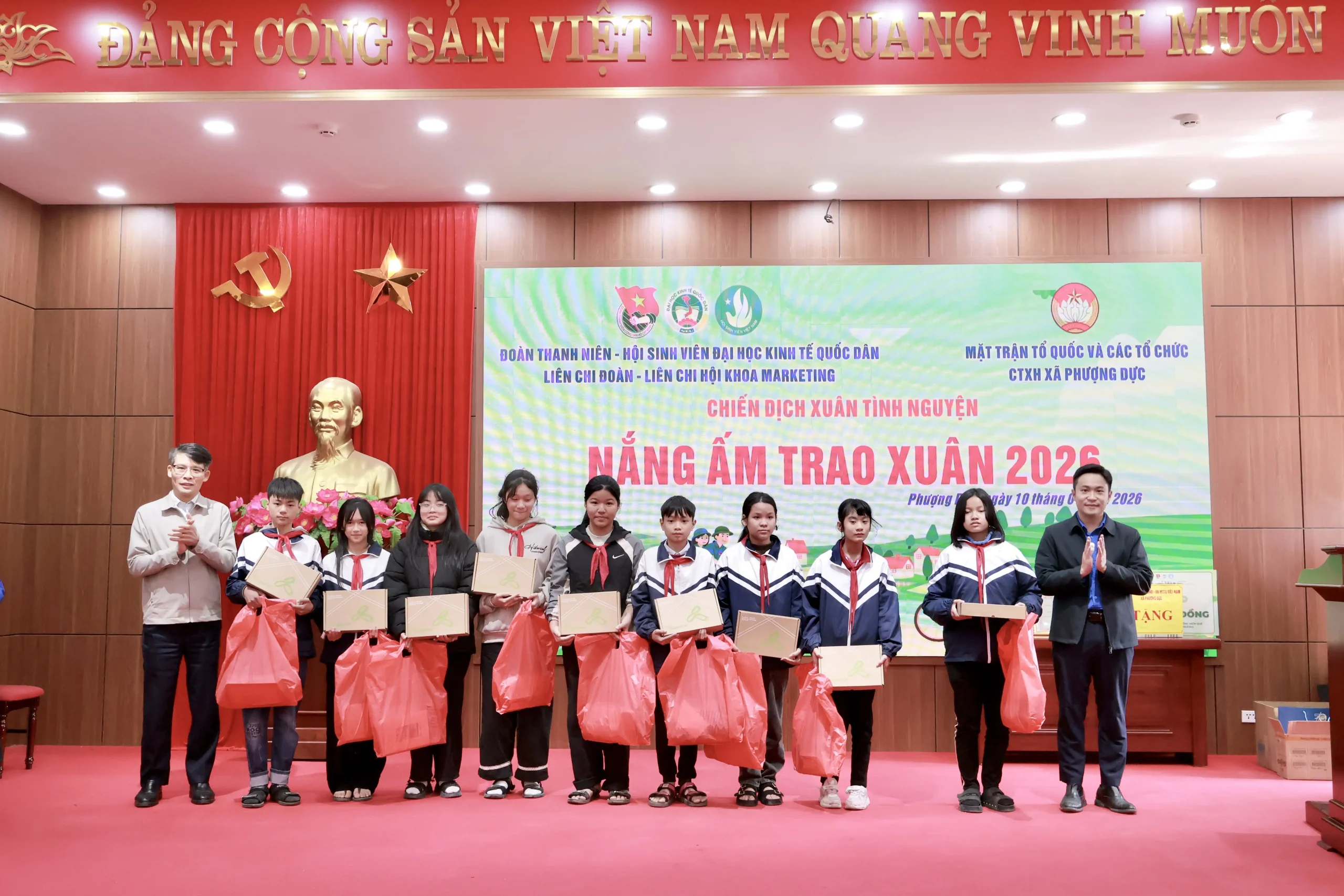 Chiến dịch khép lại bằng Lễ Tổng kết Chiến dịch Xuân thiện nguyện Nắng Ấm Trao Xuân 2026 được tổ chức trang trọng tại Ủy ban Nhân dân xã Phượng Dực, với sự tham dự của lãnh đạo địa phương, đại diện Khoa Marketing và Đoàn Thanh niên Đại học Kinh tế Quốc dân.