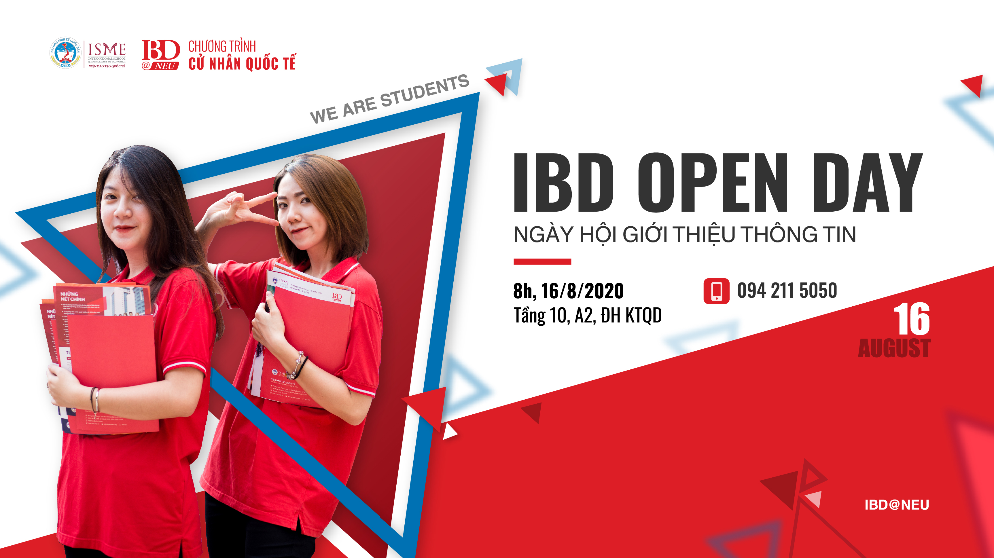 Nhằm tạođiều kiện cho phụ huynh và học sinh tiềm năng tìm hiểu về chương trình Cử nhân Quốc tế IBD@NEU và Kỳ tuyển sinh mùa Thu năm 2020 của Chương trình, Trường ĐH Kinh tế Quốc dân tổ chức Ngày hội thông tin (Open Day):