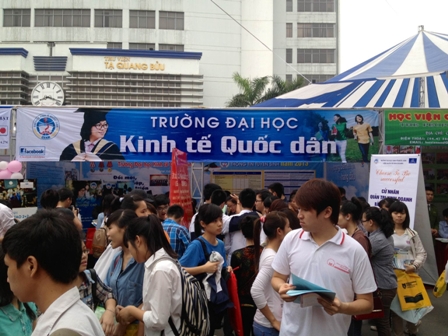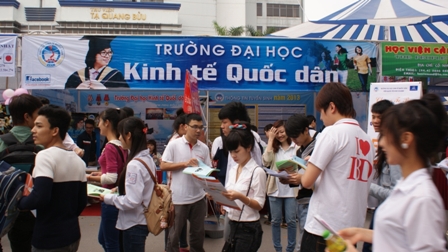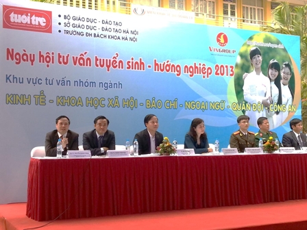 Thực hiện kế hoạch tư vấn tuyển sinh đại học chính quy năm 2013, ngày 10 tháng 3 năm 2013 vừa qua, Đại học Kinh tế quốc dân đã tham gia Ngày hội tư vấn Tuyển sinh – Hướng nghiệp do báo Tuổi trẻ và Bộ Giáo dục và Đào tạo phối hợp tổ chức tại Đại học Bách Khoa Hà Nội. Ban Tư vấn của Đại học Kinh tế quốc dân tham gia trực tiếp tại Ngày hội gồm có GS.TS. Nguyễn Quang Dong – Trưởng phòng QLĐT, TS. Lê Việt Thủy – Phó trưởng phòng QLĐT, ThS. Đinh Tuấn Dũng – Phó chánh văn phòng CTTT, ThS. Bùi Minh Hảo, ThS. Lê Anh Đức, ThS. Lê Hà, ThS. Nguyễn Thanh Bình (Phòng QLĐT), TS. Trần Thị Hồng Việt – Trưởng Ban đào tạo đại học Viện QTKD, ThS. Nguyễn Hoàng Hà – Bí thư Đoàn TN cùng đại diện của Viện Quản trị kinh doanh, Viện Đào tạo quốc tế.