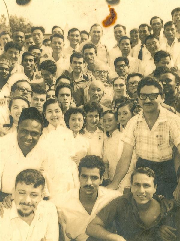 Chủ tịch Hồ Chí Minh chụp ảnh với các đại biểu dự Hội nghị sinh viên quốc tế tại Hà Nội, tháng 9/1961