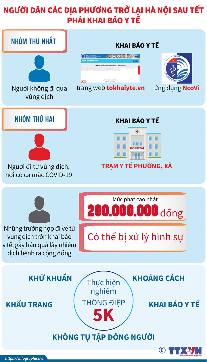 TP Hà Nội yêu cầu toàn bộ người dân từ tất cả các địa phương trở về Hà Nội sẽ phải khai báo y tế.