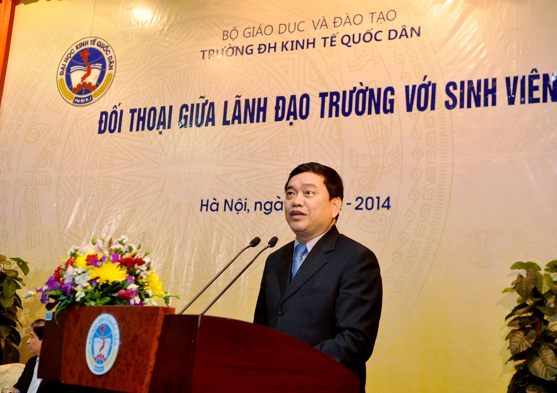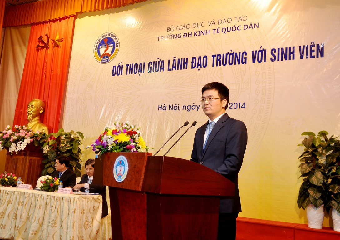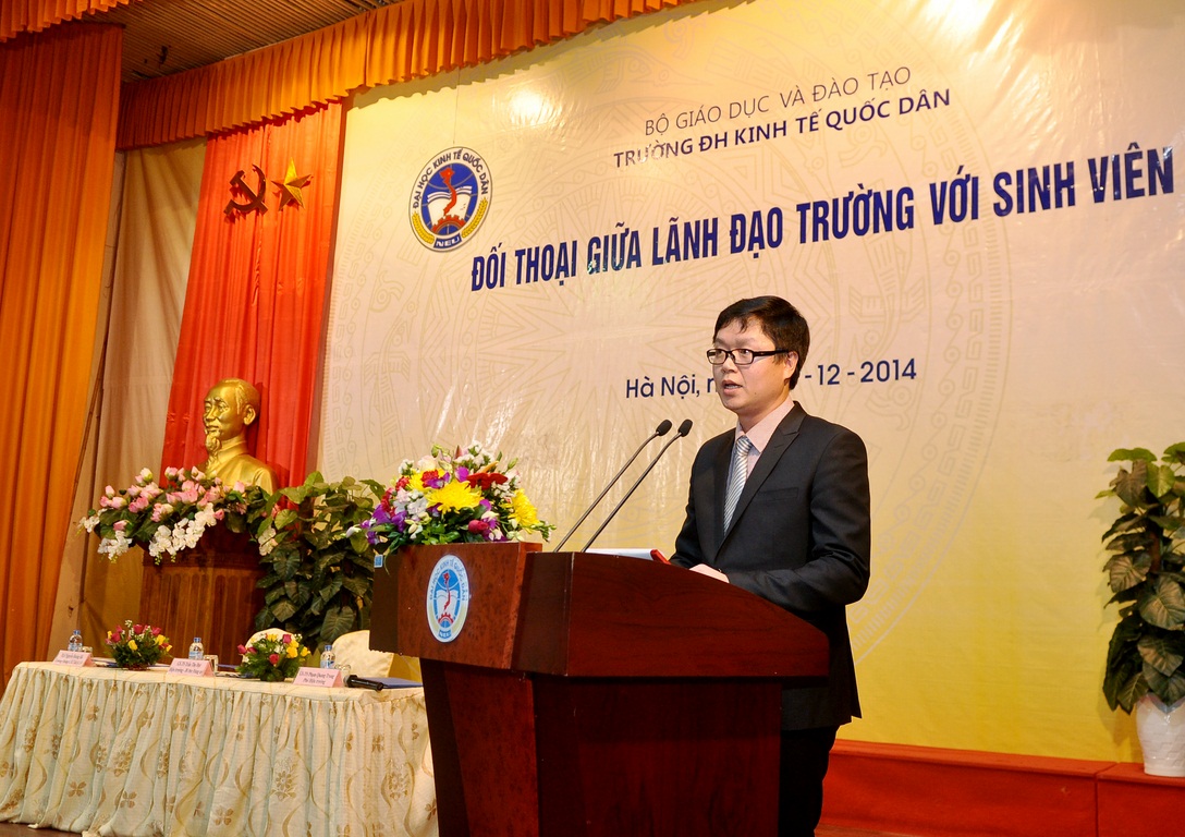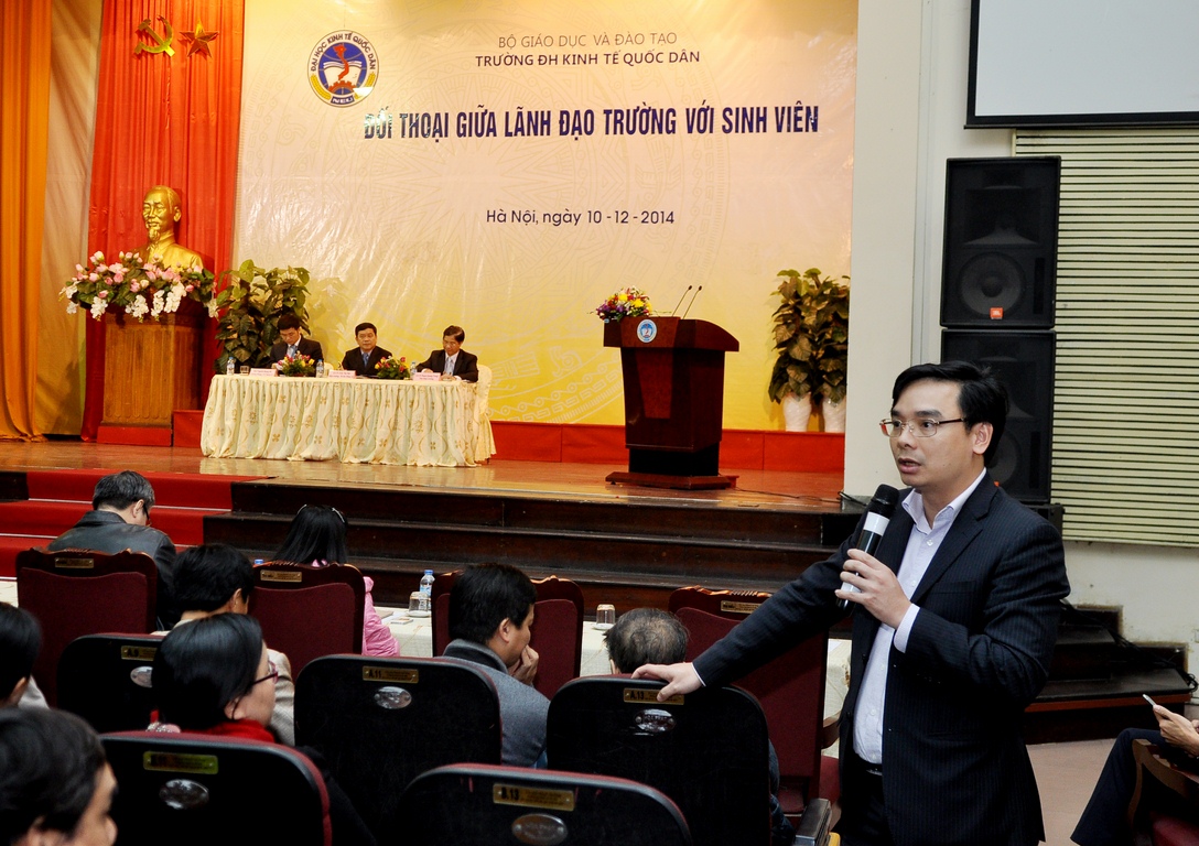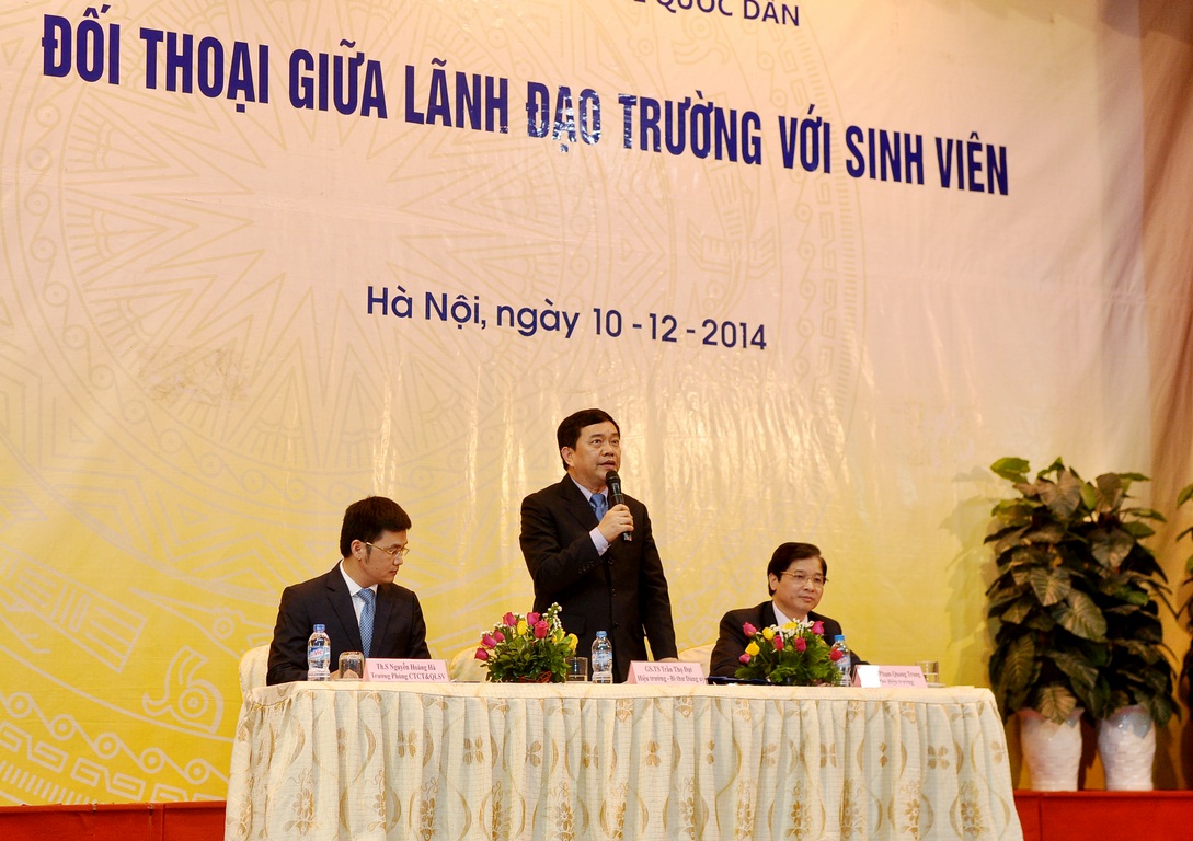 Với mục đích tạo diễn đàn trao đổi trực tiếp giữa giữa sinh viên với lãnh đạo trường một cách dân chủ và trách nhiệm. Giúp lãnh đạo Nhà trường nắm bắt tâm tư nguyện vọng và giải quyết kịp thời các mối quan tâm của sinh viên. Tối ngày 10/12/2014 tại Hội trường A – Nhà văn hóa, Nhà trường đã diễn ra buổi đối thoại giữa lãnh đạo Trường với sinh viên. Đến tham dự buổi lễ có sự tham dự của: GS.TS Trần Thọ Đạt – Hiệu trưởng, Bí thư Đảng ủy; GS.TS Phạm Quang Trung – Phó Hiệu trưởng; GS.TS Nguyễn Viết Lâm – Phó Bí thư Thường trực Đảng ủy; GS.TS Phan Công Nghĩa – nguyên Phó Hiệu trưởng; TS. Nguyễn Hữu Đồng – Chủ tịch Công đoàn; ThS. Bùi Trung Hải – Bí thư ĐTN; Đồng chí Lâm Tùng – Chủ tịch HSV, cùng các đồng chí trong Đảng ủy, lãnh đạo các tổ chức chính trị, lãnh đạo là trưởng, phó các Khoa, Viện, các trợ lý, cố vấn học tập, các thầy cô giáo cùng đông đảo sinh viên trong trường.
