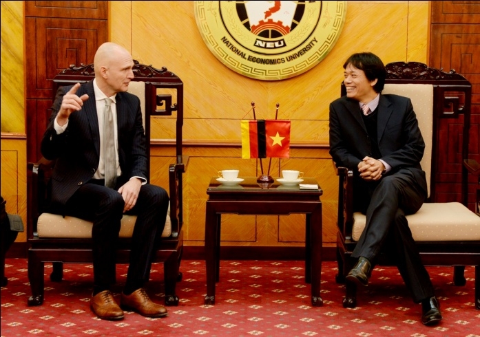 Ngày 25/1/2016, PGS.TS Phạm Hồng Chương – Phó Hiệu trưởng trường Đại học Kinh tế quốc dân (ĐH KTQD) đã có buổi tiếp và làm việc với đoàn cán bộ Viện Khoa học Khởi sự Doanh nghiệp và Chuyển giao công nghệ quốc tế (ZIFET), trường Đại học Tổng hợp Koblenz – Landan, Đức.