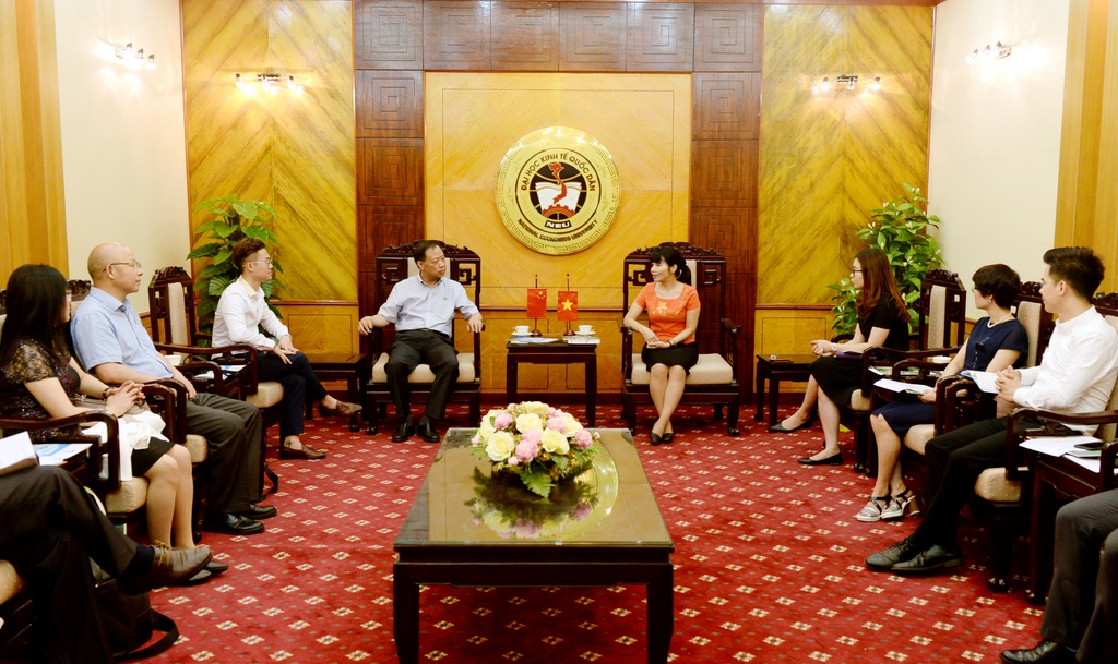PGS.TS Trần Thị Vân Hoa – Phó Hiệu trưởng trường Đại học Kinh tế Quốc dân tiếp đón và làm việc với lãnh đạo trường Đại học Vũ Hán, Trung Quốc