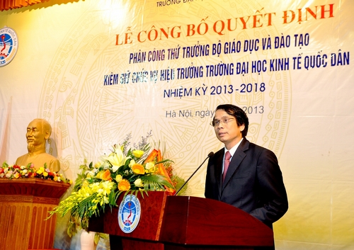 Tại Lễ công bố Quyết định phân công kiêm nhiệm Hiệu trưởng Trường Đại học Kinh tế Quốc dân nhiệm kỳ 2013-2018