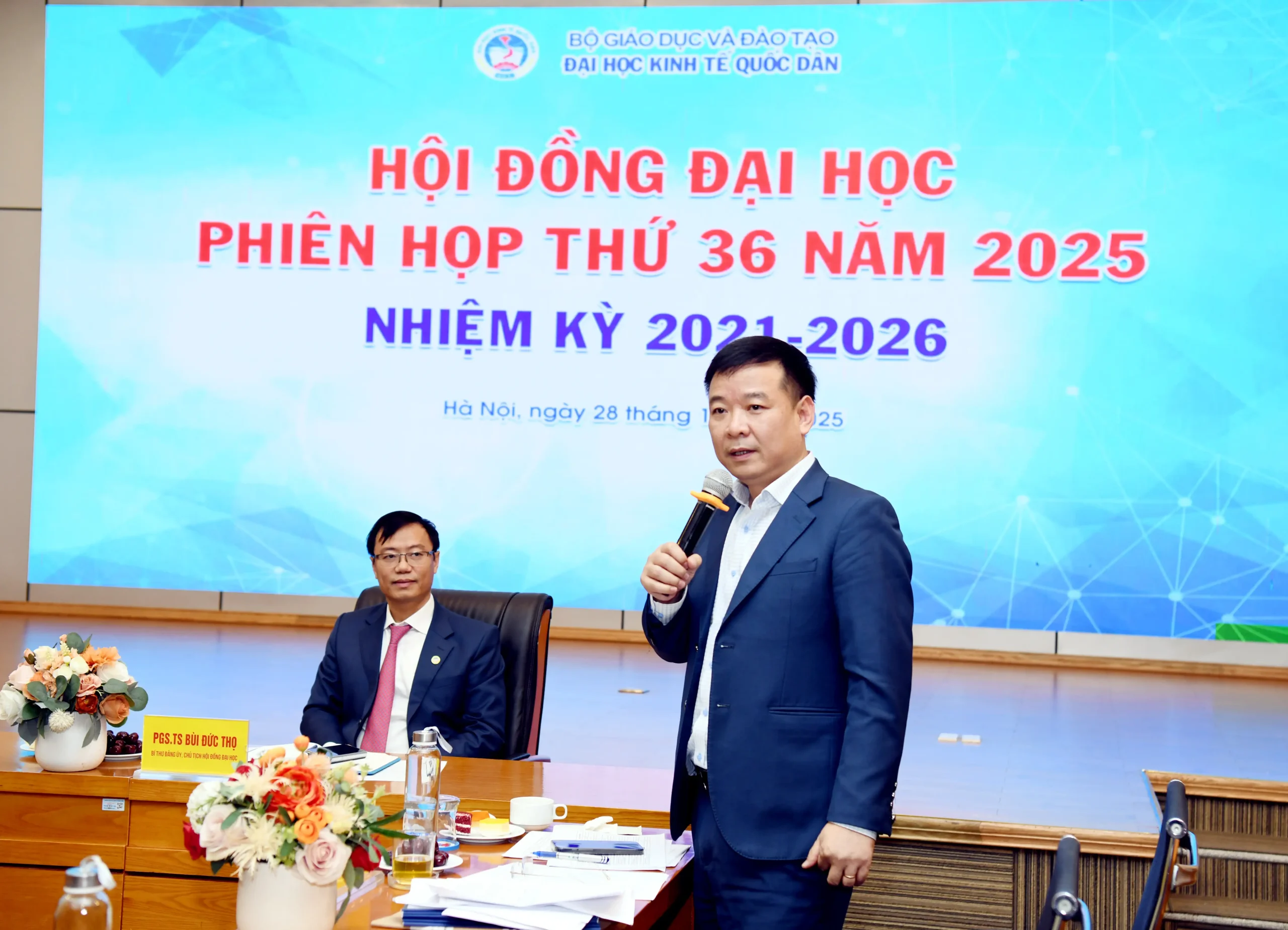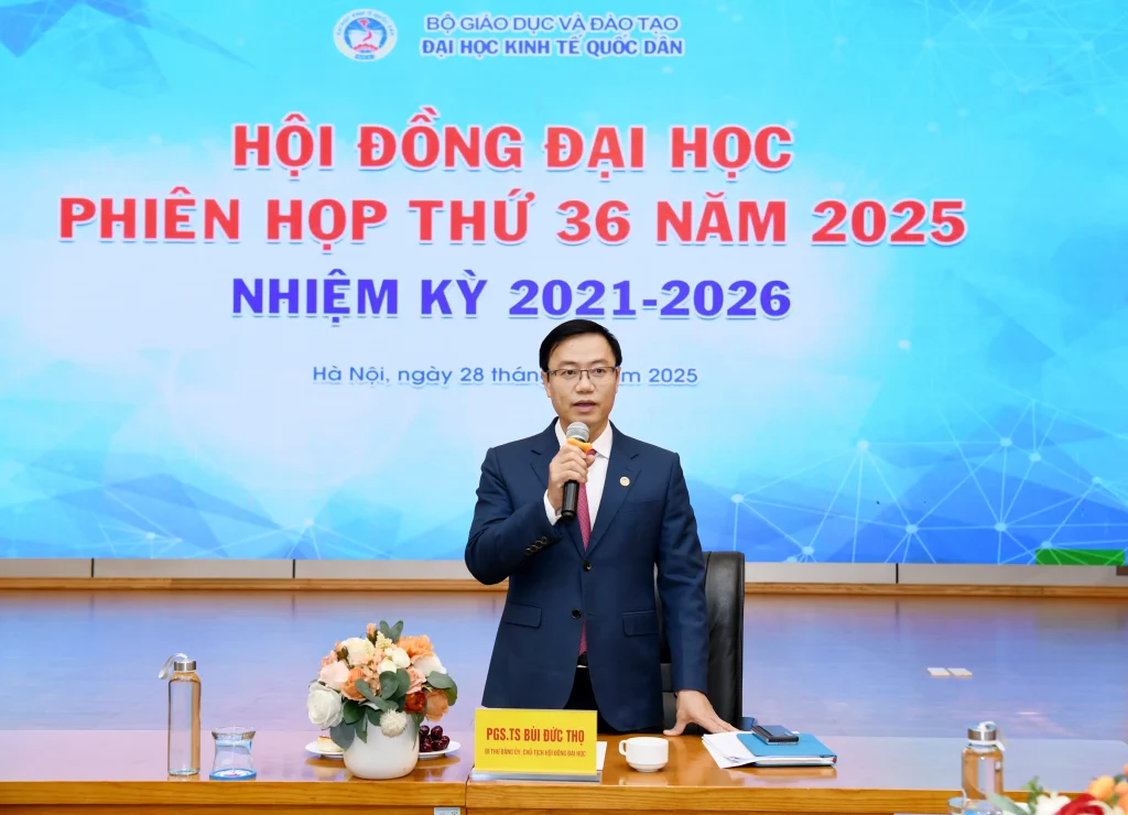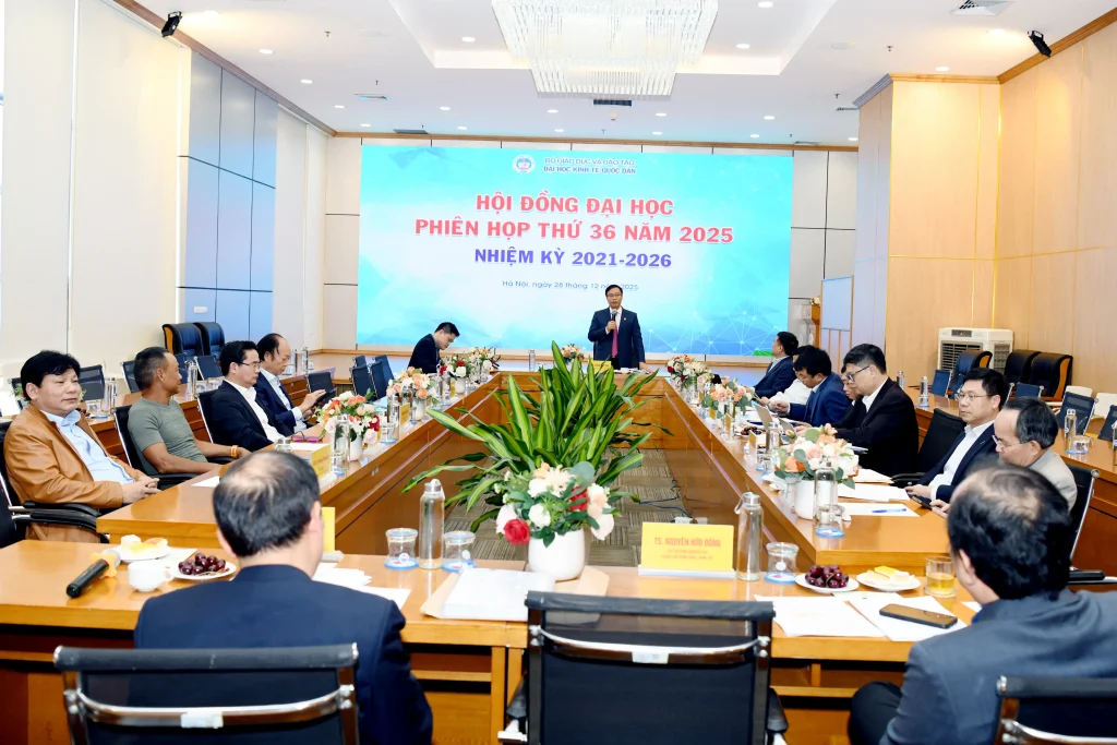 Chiều ngày 28/12/2025, Đại học Kinh tế Quốc dân đã tổ chức Phiên họp Hội đồng Đại học nhiệm kỳ 2021–2026, phiên thứ 36 năm 2025 theo hình thức trực tiếp kết hợp trực tuyến. Phiên họp do PGS.TS Bùi Đức Thọ – Bí thư Đảng ủy, Chủ tịch Hội đồng Đại học chủ trì.