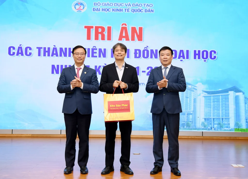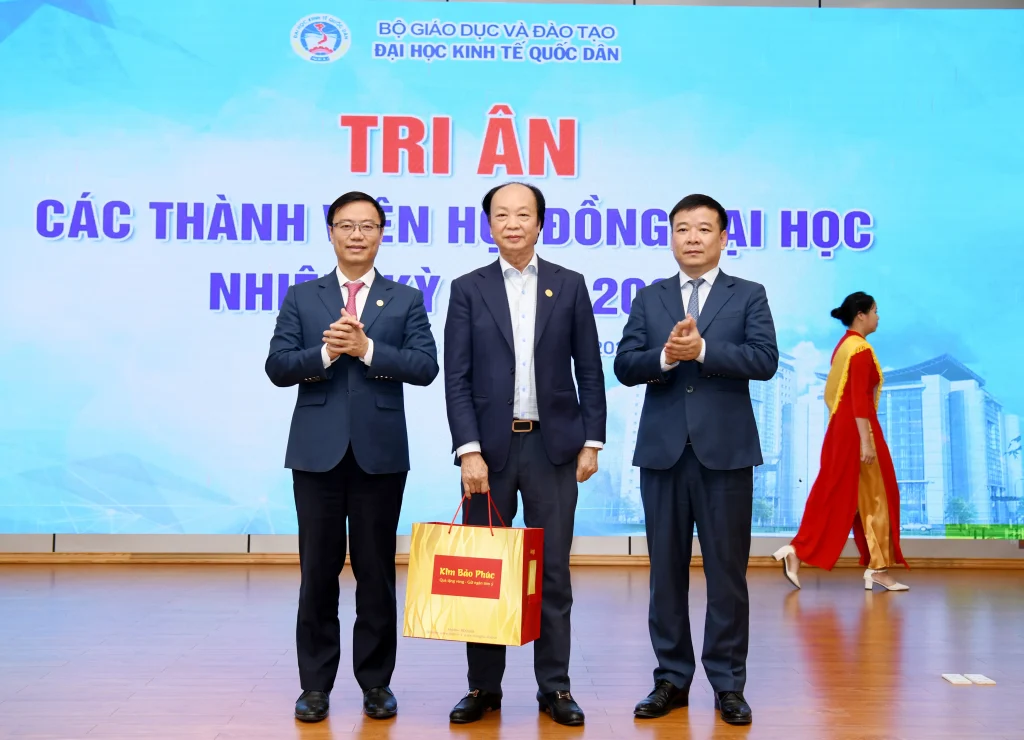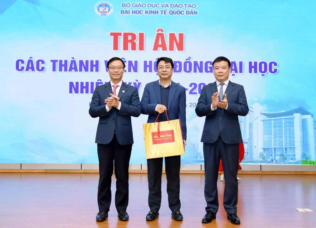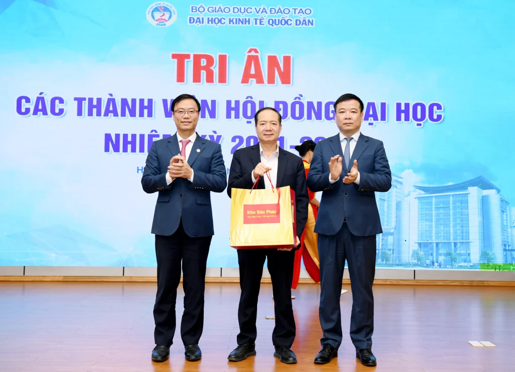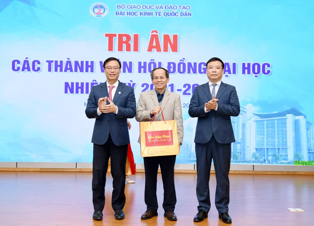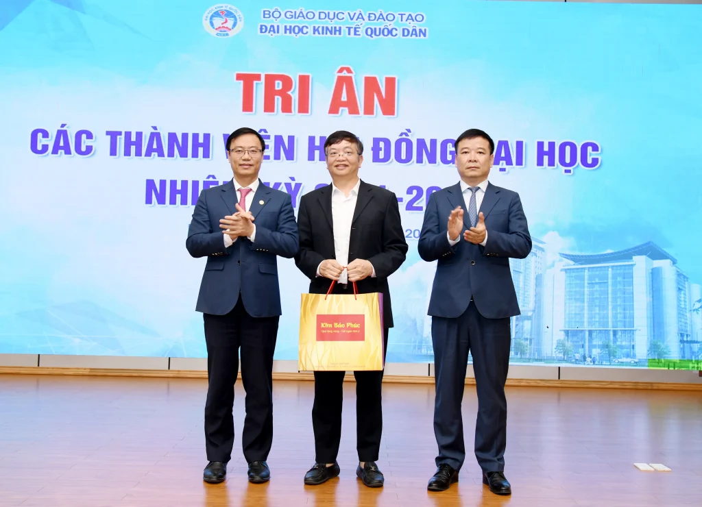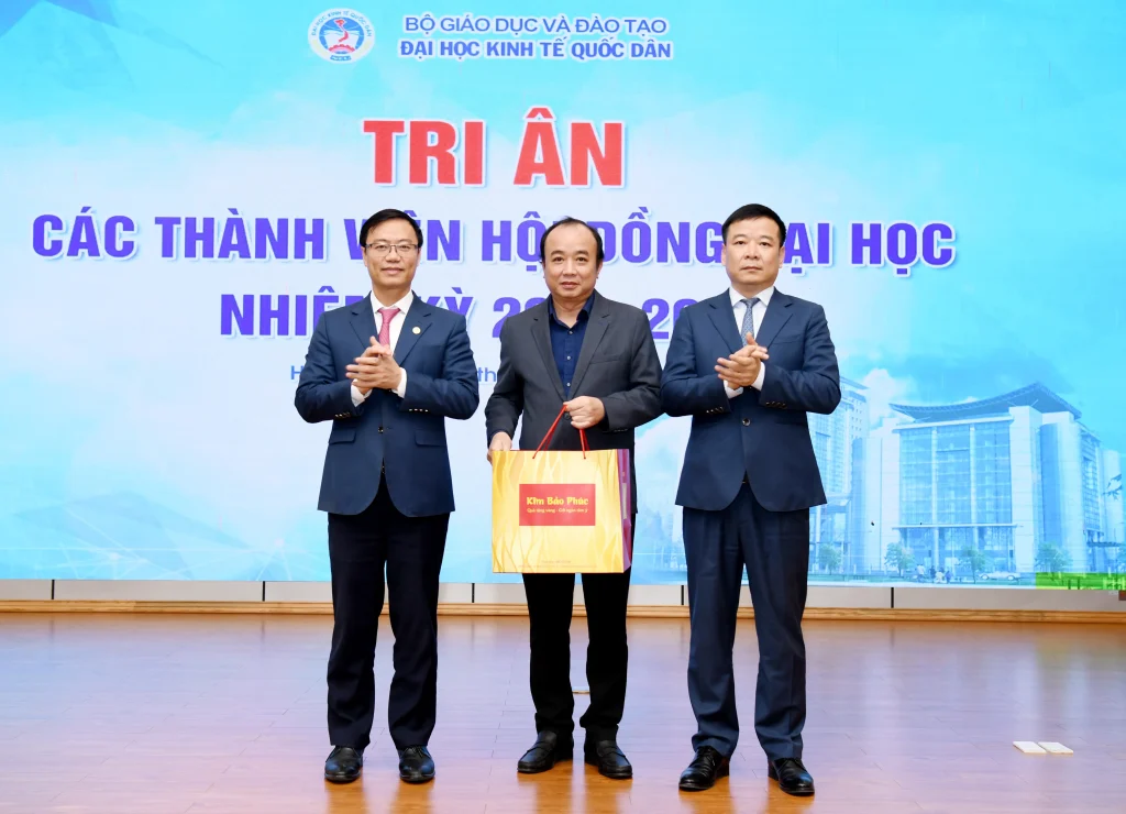 Trong khuôn khổ chương trình, lãnh đạo Đại học đã trao quà tri ân tới các thành viên Hội đồng nhằm ghi nhận những đóng góp tận tâm, trách nhiệm trong suốt nhiệm kỳ, qua đó khẳng định sự trân trọng đối với vai trò và những dấu ấn quan trọng của Hội đồng đối với sự phát triển của Đại học Kinh tế Quốc dân.