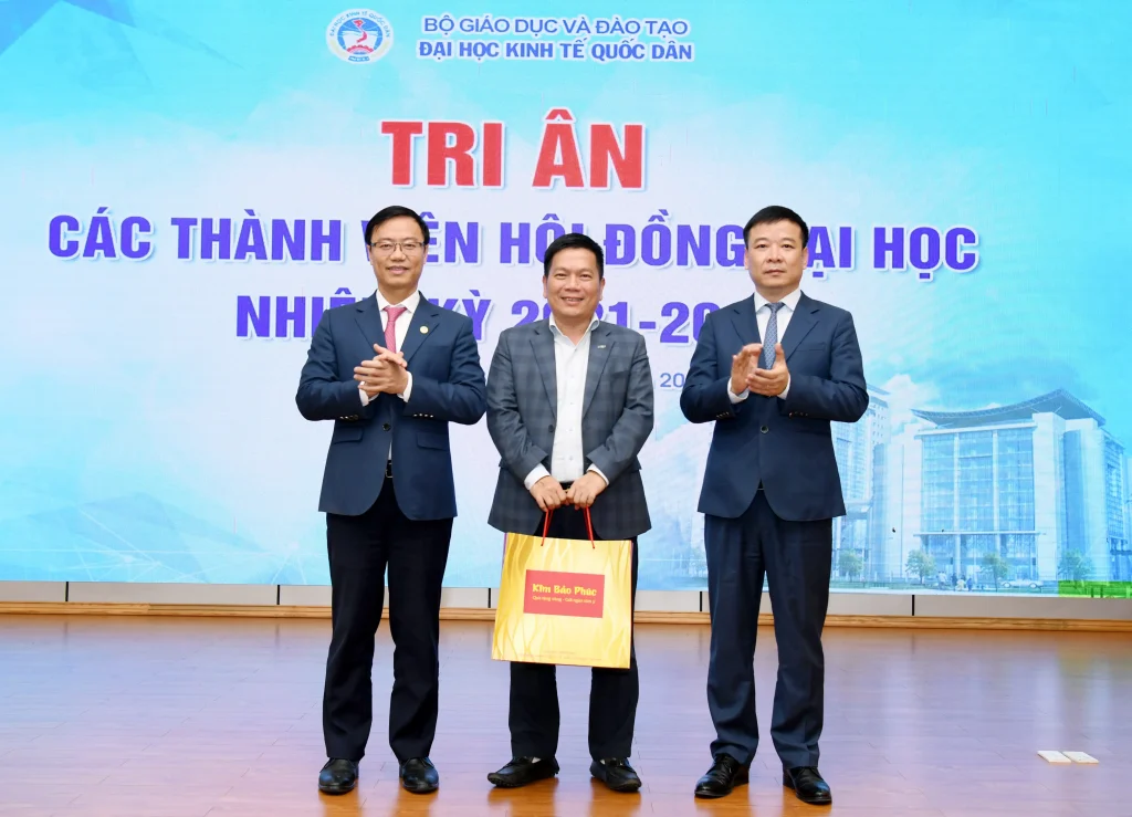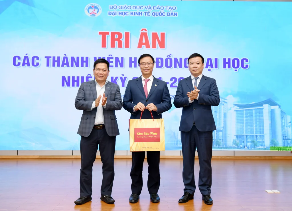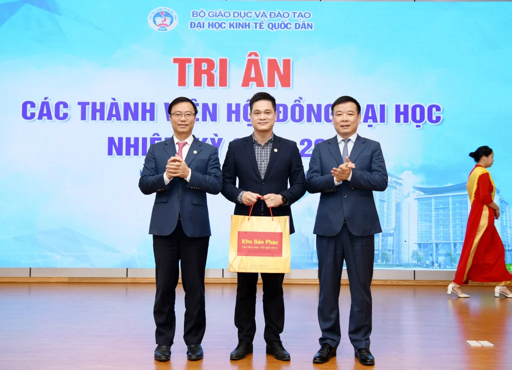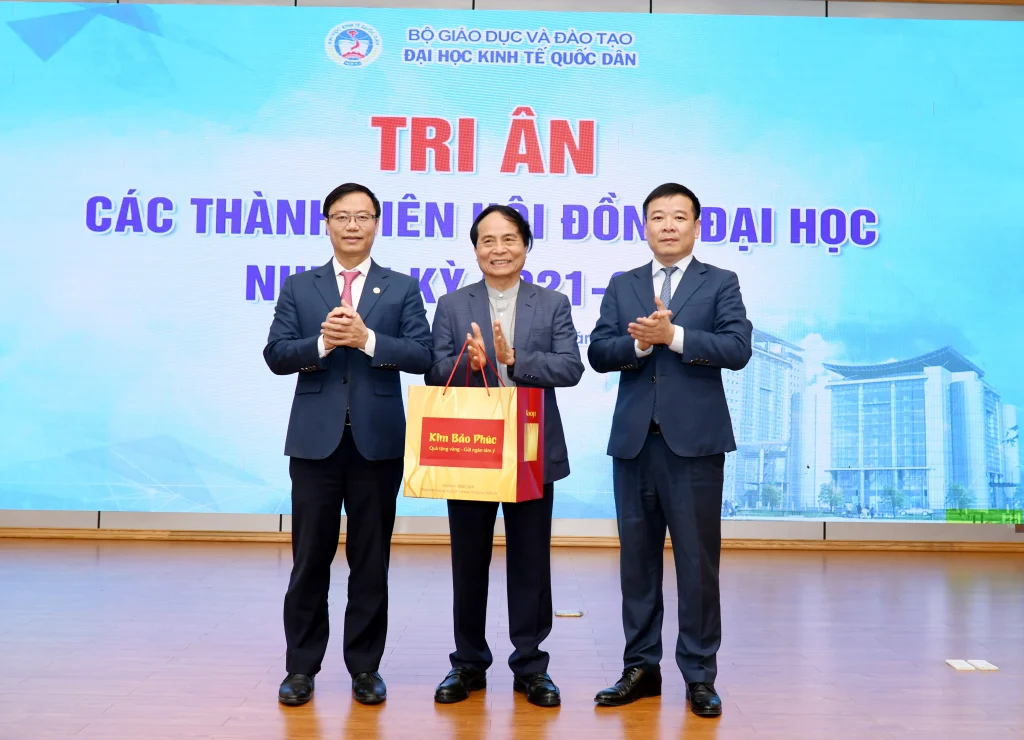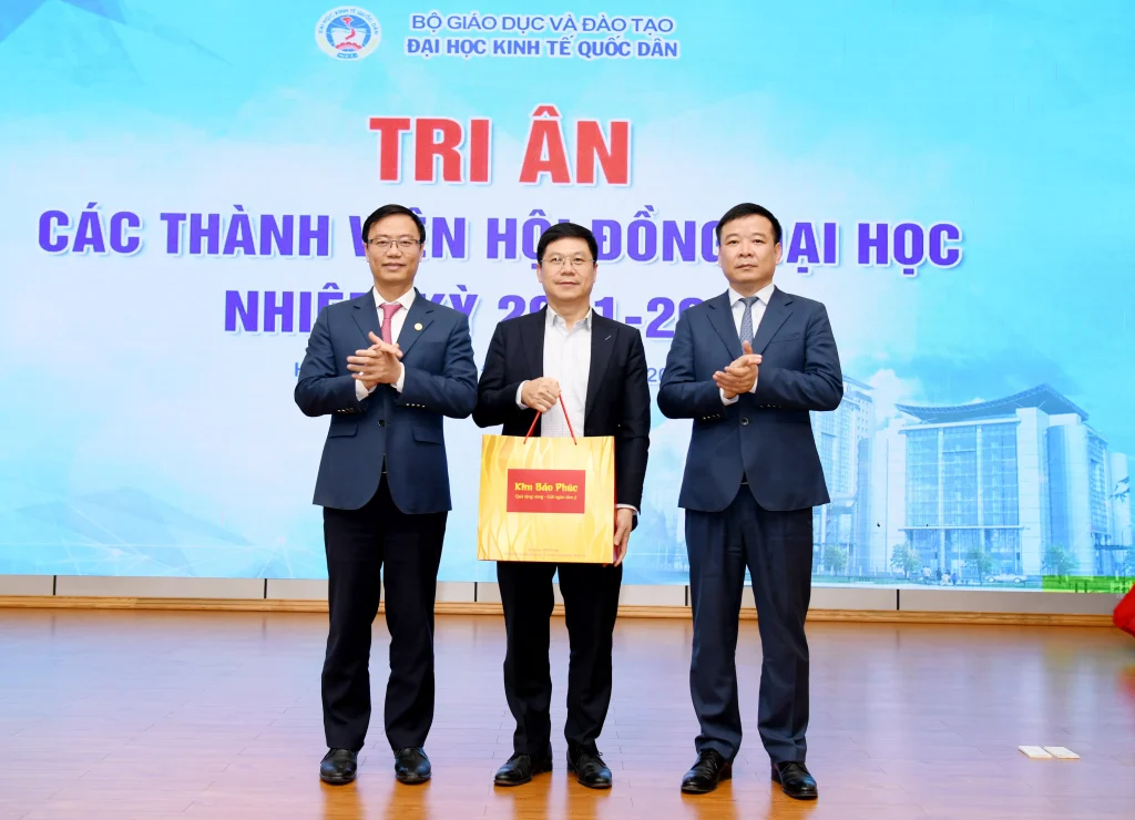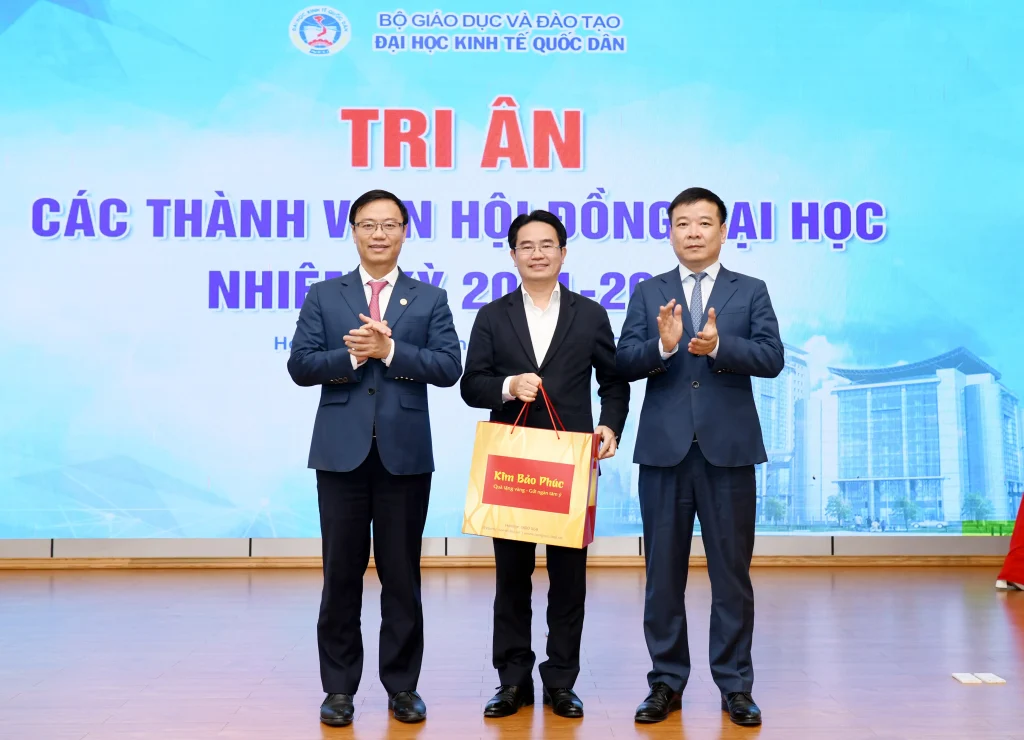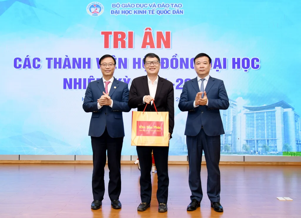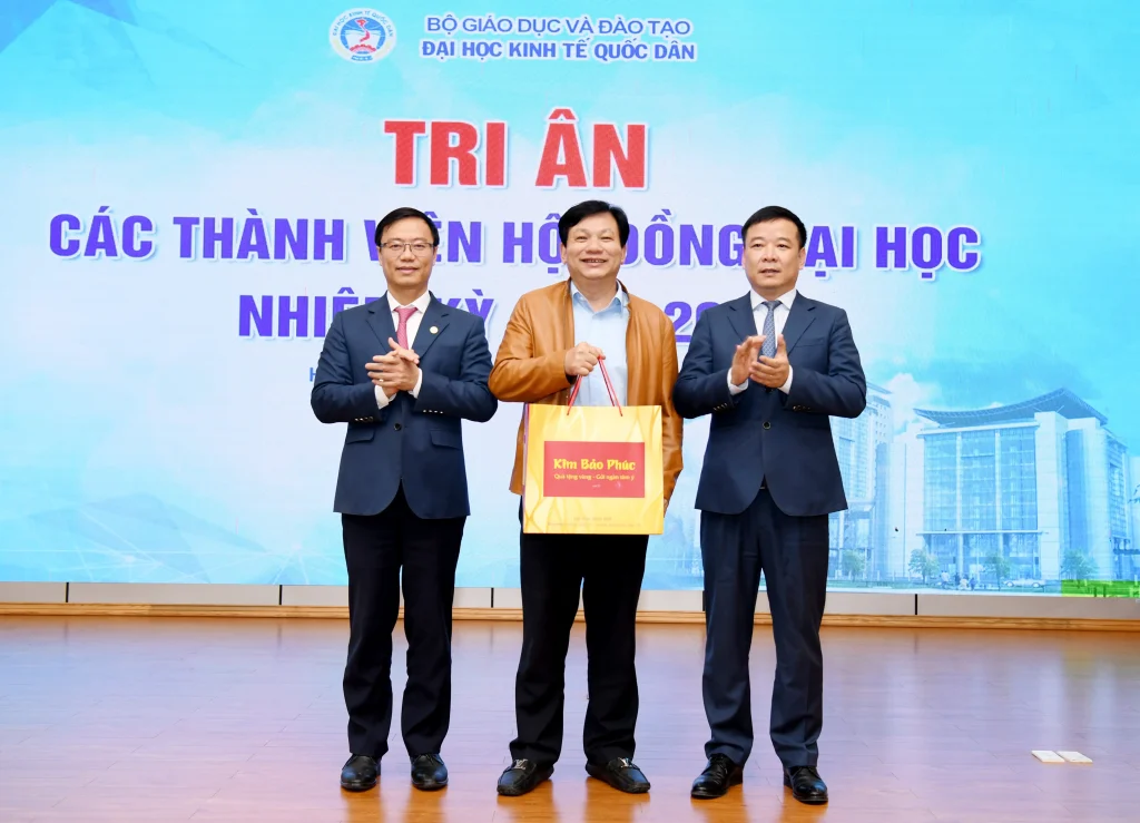 Trong khuôn khổ chương trình, lãnh đạo Đại học đã trao quà tri ân tới các thành viên Hội đồng nhằm ghi nhận những đóng góp tận tâm, trách nhiệm trong suốt nhiệm kỳ, qua đó khẳng định sự trân trọng đối với vai trò và những dấu ấn quan trọng của Hội đồng đối với sự phát triển của Đại học Kinh tế Quốc dân.