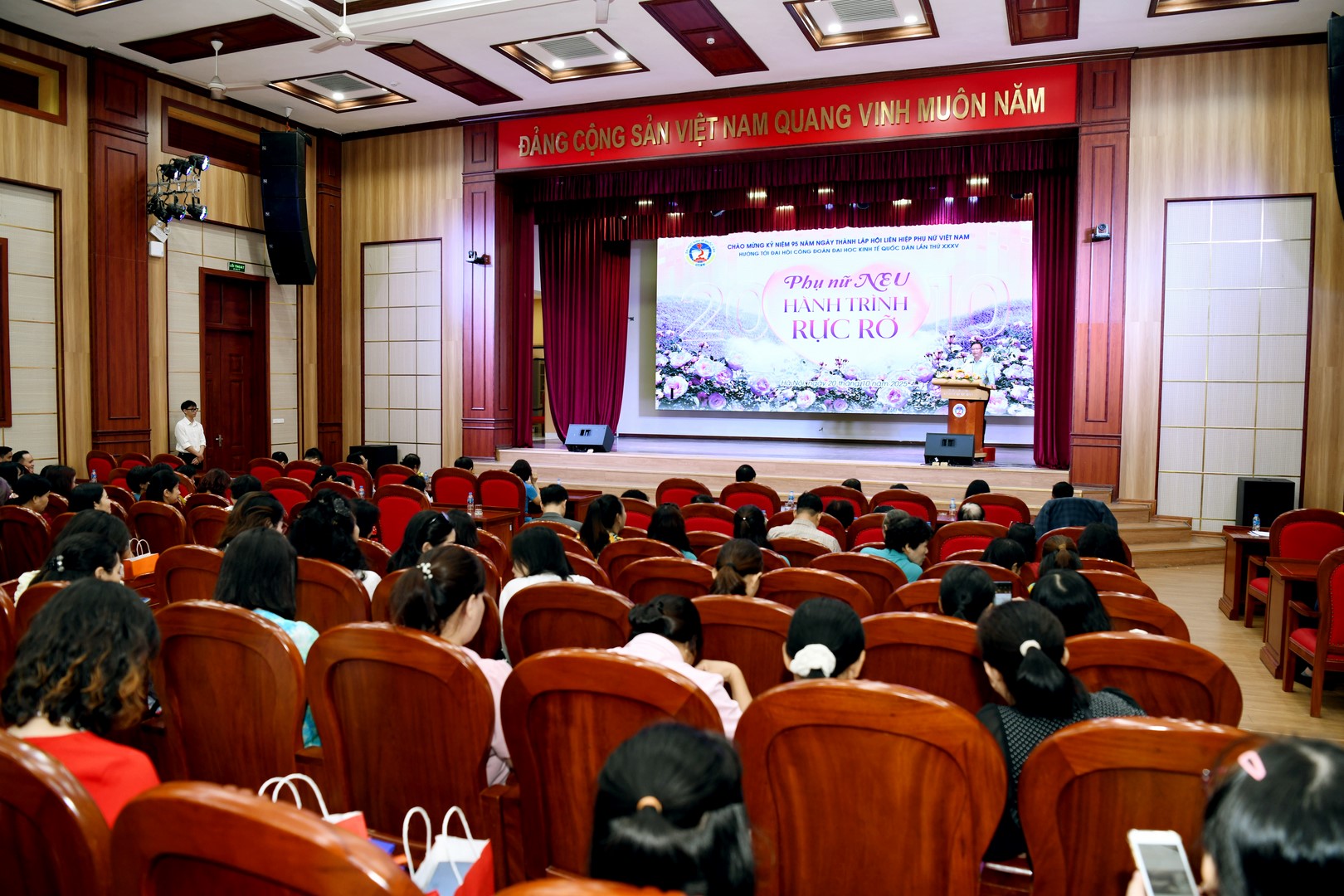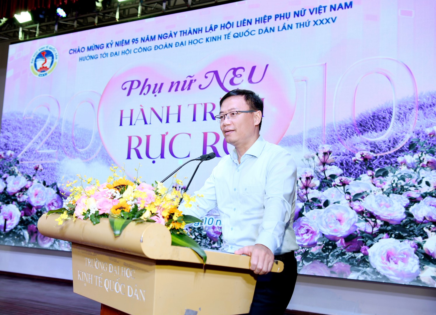 Phát biểu tại chương trình, PGS.TS Bùi Đức Thọ – Bí thư Đảng ủy, Chủ tịch Hội đồng Đại học khẳng định, suốt 95 năm qua, phụ nữ Việt Nam luôn là biểu tượng của nghị lực, trí tuệ và lòng nhân hậu. Tinh thần ấy được kế thừa và tỏa sáng trong từng thế hệ phụ nữ NEU – những người âm thầm cống hiến trên bục giảng, trong lĩnh vực nghiên cứu, công tác quản lý hay ở những vị trí thầm lặng phía sau, góp phần xây dựng và khẳng định uy tín của một ngôi trường đầu ngành.