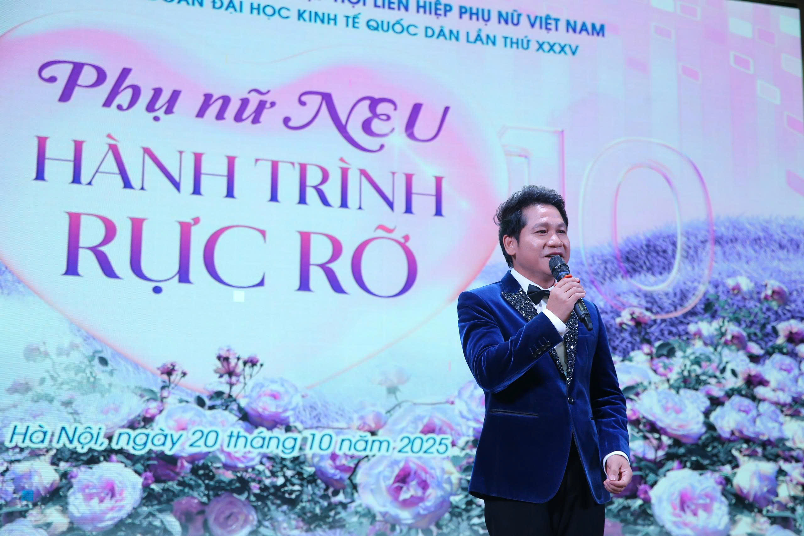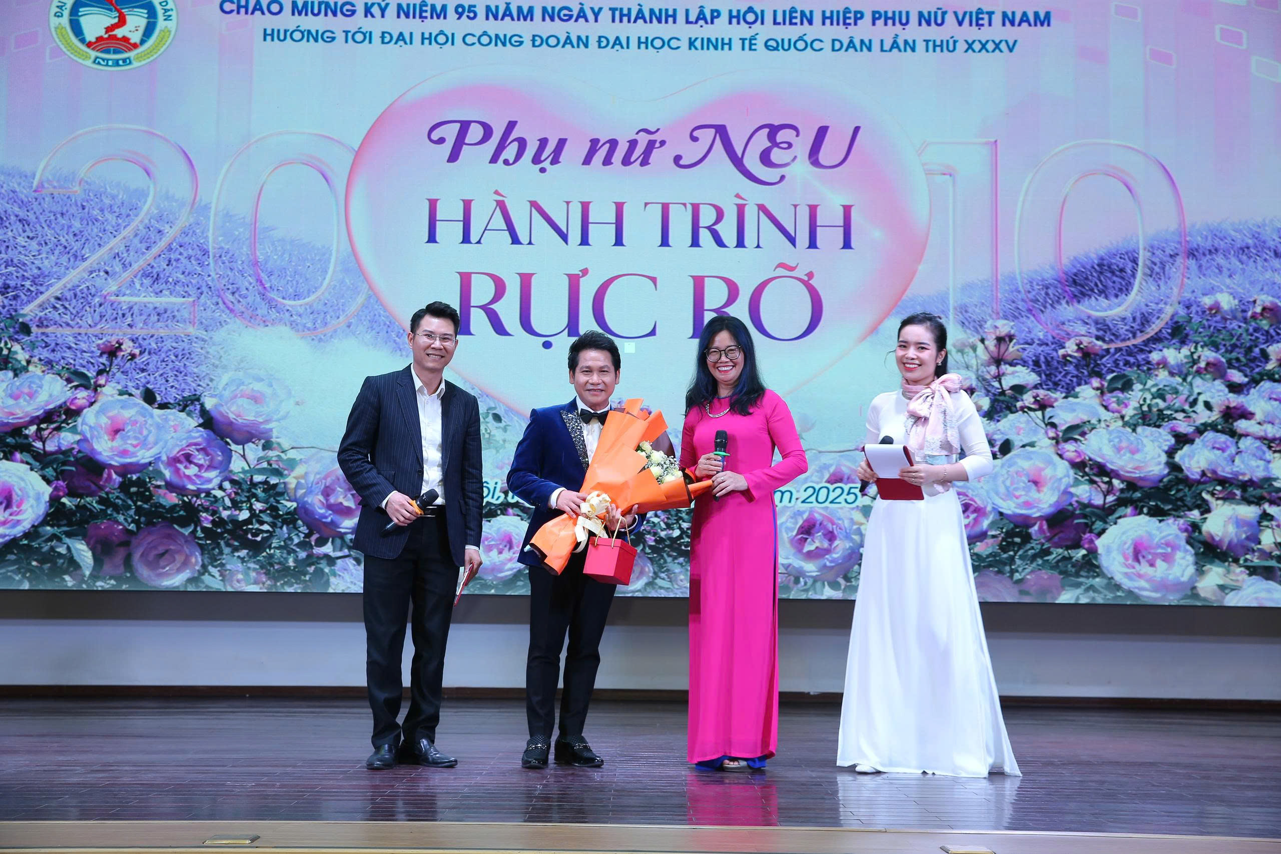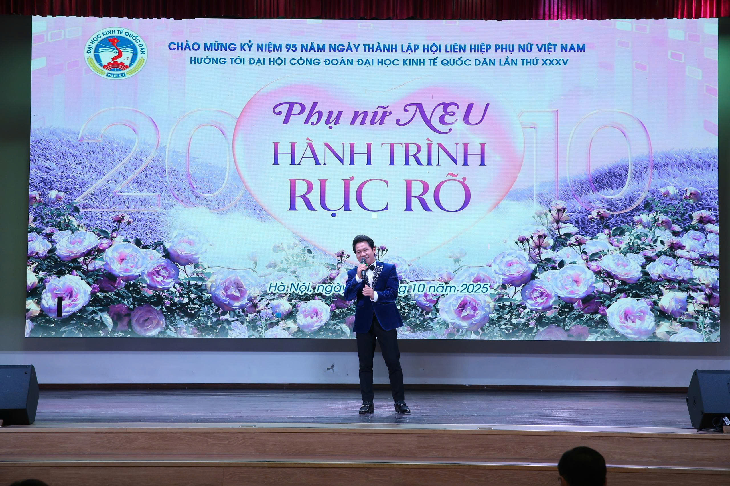 Cùng với đó, không khí của chương trình chào mừng Ngày Phụ nữ Việt Nam 20/10 tại Đại học Kinh tế Quốc dân càng trở nên đặc biệt ấm áp và tràn đầy cảm xúc với sự góp mặt của hai giọng ca được yêu mến – ca sĩ Trọng Tấn và ca sĩ Hà Myo. Những ca khúc được mang đến không chỉ là món quà âm nhạc gửi tặng phái đẹp NEU, mà còn là lời tri ân sâu sắc và chúc mừng nồng nhiệt đến toàn thể nữ cán bộ, giảng viên, nhân viên và sinh viên của Đại học, những người phụ nữ tài năng, duyên dáng, luôn hết mình cống hiến cho sự phát triển của NEU.