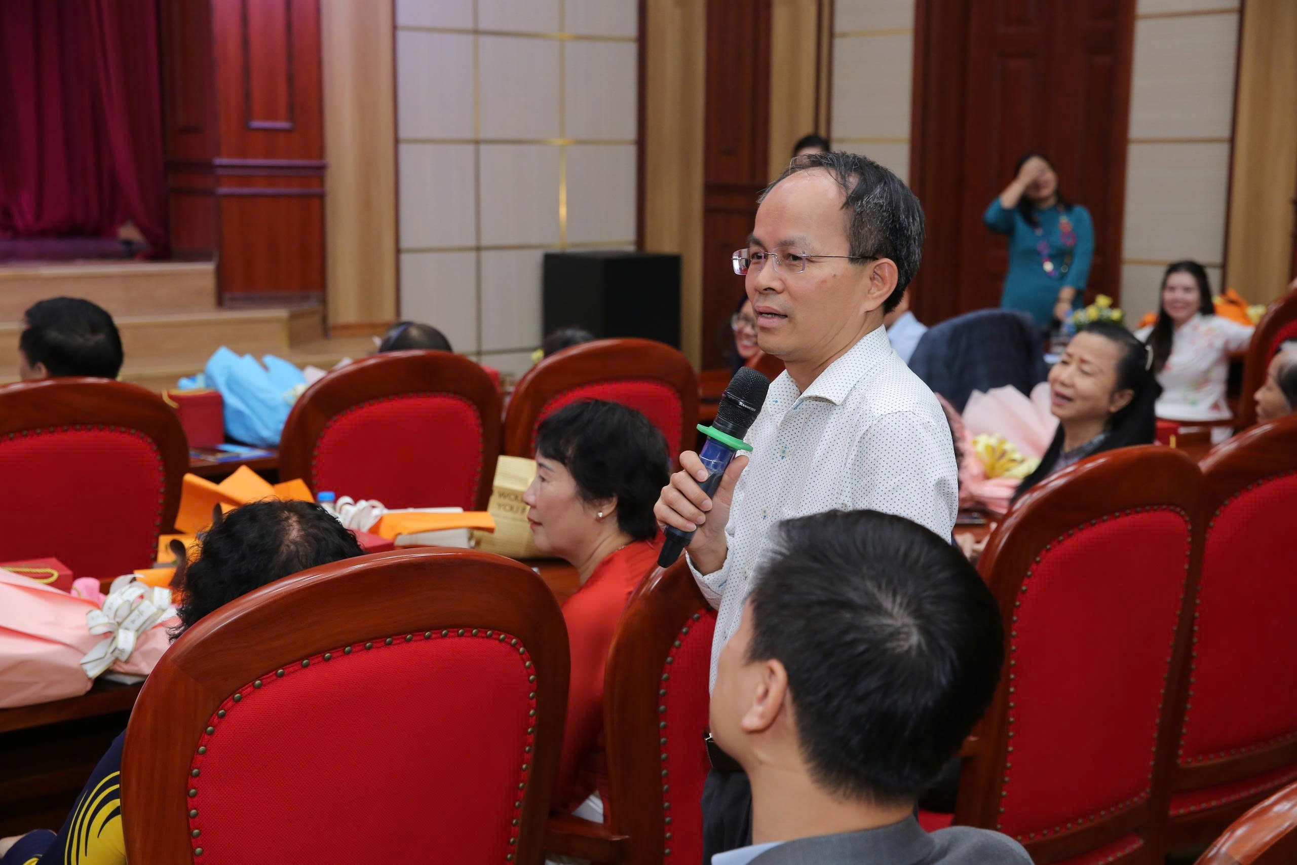 PGS.TS Bùi Đức Thọ – Bí thư Đảng ủy, Chủ tịch Hội đồng Đại học, Trưởng ban Vì sự tiến bộ của phụ nữ, Đại học Kinh tế Quốc dân phát biểu