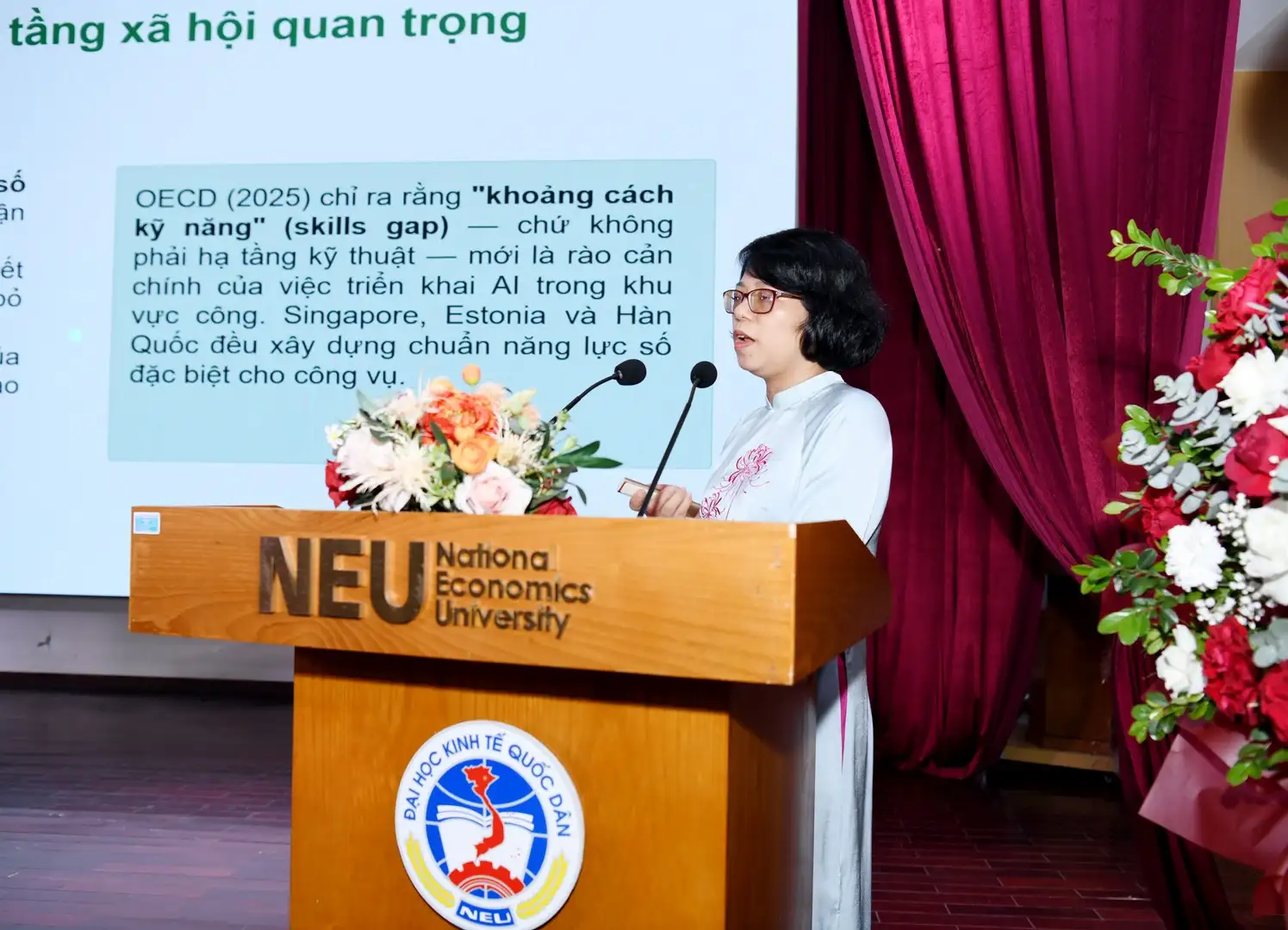 Theo Giám đốc Đại học, trong bối cảnh kinh tế số và quản trị dựa trên dữ liệu đang làm thay đổi sâu sắc phương thức vận hành của nền kinh tế, quản trị quốc gia ngày càng trở thành yếu tố quyết định năng lực cạnh tranh và sự phát triển bền vững của mỗi quốc gia. Những định hướng lớn được xác lập, trong đó nhấn mạnh yêu cầu nâng cao năng lực quản trị quốc gia theo hướng hiện đại, hiệu quả; xây dựng bộ máy hành chính tinh gọn, hoạt động hiệu lực, hiệu quả; đồng thời đẩy mạnh chuyển đổi số quốc gia, phát triển Chính phủ số, kinh tế số và xã hội số, đã phản ánh rõ nét sự chuyển dịch từ tư duy quản lý sang mô hình quản trị công hiện đại, dựa trên hiệu quả, minh bạch và trách nhiệm giải trình. Trên cơ sở đó, yêu cầu đặt ra là tiếp tục hoàn thiện thể chế, phân định rõ thẩm quyền giữa Trung ương và địa phương, nâng cao hiệu quả phối hợp chính sách, đồng thời phát triển đội ngũ cán bộ công vụ có năng lực số, tư duy chiến lược và khả năng ra quyết định dựa trên dữ liệu.