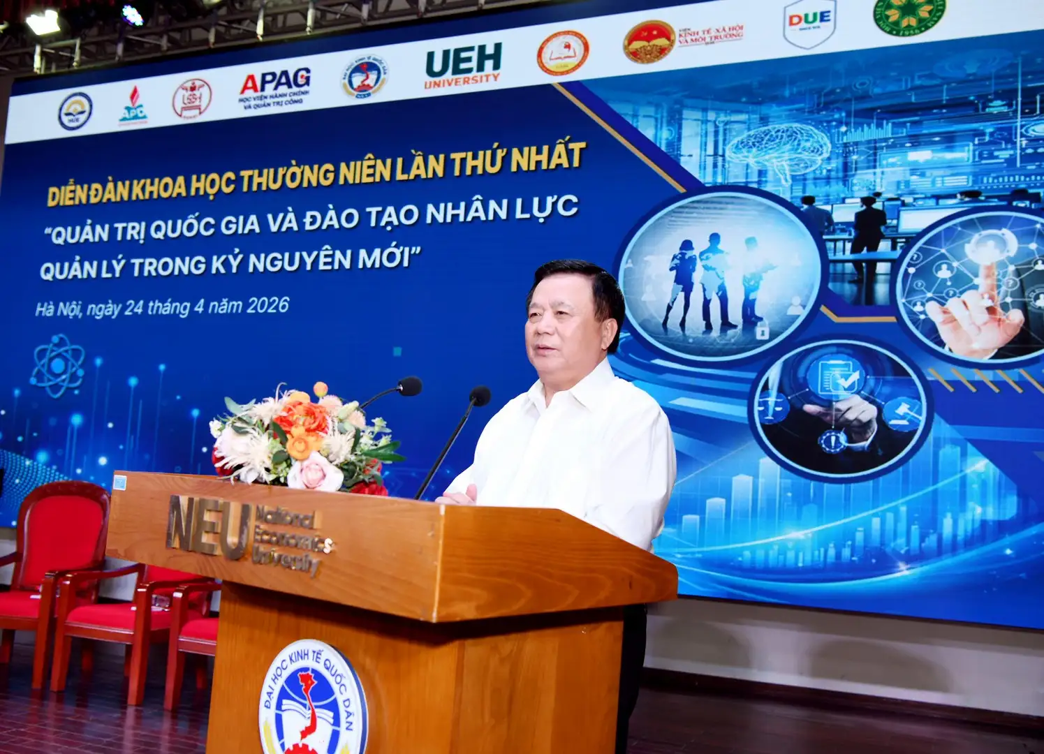 Sáng 24/4/2026, tại Đại học Kinh tế Quốc dân đã diễn ra Lễ ra mắt Mạng lưới các cơ sở đào tạo chính sách và quản trị công (GPPA) và Diễn đàn khoa học thường niên lần thứ nhất với chủ đề “Quản trị quốc gia và đào tạo nhân lực quản lý trong kỷ nguyên mới”. Sự kiện đánh dấu bước khởi đầu quan trọng trong việc hình thành một mạng lưới hợp tác học thuật có tính liên kết cao, quy tụ các cơ sở đào tạo, viện nghiên cứu và chuyên gia trong lĩnh vực chính sách công và quản trị công, hướng tới nâng cao chất lượng đào tạo, nghiên cứu và tư vấn chính sách trong bối cảnh mới.