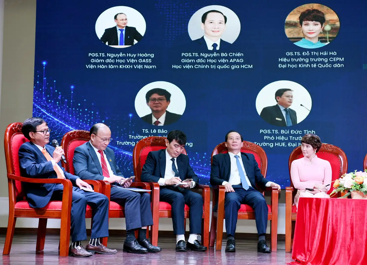 Về phía các trường đại học, học viện, cơ sở giáo dục có: PGS.TS Trần Trọng Nguyên – Giám đốc Học viện Chính sách và Phát triển; PGS.TS Nguyễn Bá Chiến – Giám đốc Học viện Hành chính và Quản trị công, Học viện Chính trị quốc gia Hồ Chí Minh; PGS.TS Bùi Văn Huyền – Viện trưởng Viện Kinh tế – Xã hội và Môi trường, Học viện Chính trị quốc gia Hồ Chí Minh; PGS.TS Nguyễn Huy Hoàng – Giám đốc Học viện Khoa học xã hội, Viện Hàn lâm Khoa học xã hội Việt Nam; TS. Nguyễn Văn Hội – Viện trưởng Viện Nghiên cứu Chiến lược, Chính sách Công thương, Bộ Công thương; GS.TS Lê Văn Huy – Hiệu trưởng Trường Đại học Kinh tế, Đại học Đà Nẵng; GS.TS Nguyễn Đức Trung – Hiệu trưởng Trường Đại học Ngân hàng, TP. HCM; PGS.TS Thái Thị Kim Oanh – Hiệu trưởng Trường Kinh tế, Đại học Vinh; GS.TS Hoàng Anh Tuấn – Hiệu trưởng Trường Đại học KHXH&NV, ĐHQG Hà Nội; PGS.TS Bùi Quang Hùng – Phó Giám đốc Phụ trách Đại học Kinh tế TP. Hồ Chí Minh; PGS.TS Bùi Đức Tính – Phó Hiệu trưởng Trường Đại học Kinh tế, Đại học Huế; GS.TS Phạm Đức Cường – Phó Giám đốc Học viện Nông nghiệp Việt Nam; GS.TS Đào Văn Hùng – Nguyên Giám đốc Học viện Chính sách và Phát triển.