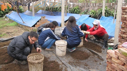![]() Cùng các chuyên gia và nông dân kiểm tra chất lượng giun quế tại Sóc Sơn, Hà Nội – Ảnh: SIFE cung cấp |