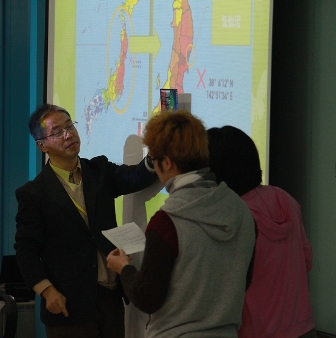 GS. Ito cùng sinh viên ĐH Ibaraki chia sẻ về những thiệt hại của trận động đất sóng thần tại Nhật Bản một năm trước đó.