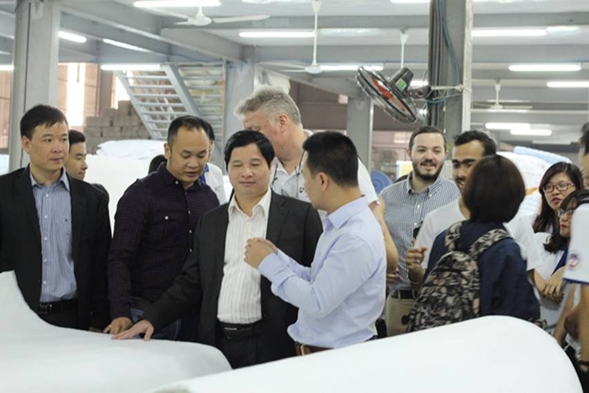 Đoàn đã được ông Phạm Văn Tuần – Tổng Giám đốc công ty Hanvico giới thiệu về tình hình sản xuất kinh doanh và chiến lược phát triển của công ty. Ông Tuần cho biết, công ty Hanvico là một trong những cơ sở sản xuất chăn, ga, gối, đệm có uy tín của Việt Nam, có nhiều năm kinh nghiệm và giờ đây chất lượng những sản phẩm của Hanvico đã mang tầm quốc tế. Sản phẩm của công ty được xuất khẩu sang nhiều nước trên thế giới như các nước Đức, Pháp, Ý, Hoa Kỳ v.v… Sau đó đoàn đã đi tham quan toàn bộ dây chuyền sản xuất của công ty. Đây là một dây chuyền sản xuất hiện đại, khép kín nên sản phẩm của công ty luôn có chất lượng tốt. Tại đây, sinh viên học hỏi được rất nhiều điều về quy trình sản xuất sản phẩm, quy trình phát triển thị trường, chăm sóc khách hàng, phân phối sản phẩm, liên kết với nước ngoài trong việc chuyển giao công nghệ… Điều này làm cho kiến thức của sinh viên được mở rộng hơn, thêm vào đó là những giải đáp thắc mắc, sự hướng dẫn nhiệt tình, chân thành của ông Phạm Văn Hải- Giám đốc kinh doanh công ty Hanvico trong quá trình thăm quan các dây chuyền sản xuất. Ngoài ra, sinh viên cũng còn được học hỏi thêm các kiến thức như kỹ năng giao tiếp, phỏng vấn và chia sẻ kinh nghiệm làm việc từ các lãnh đạo, các anh chị trong công ty Hanvico; điều này giúp sinh viên có thêm tự tin hơn nữa để chuẩn bị cho hành trang sắp tới.