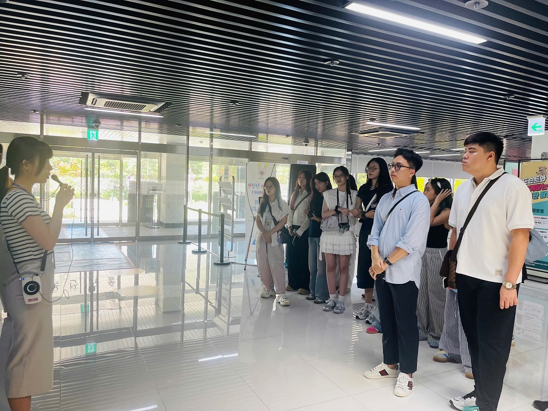 Bên cạnh đó, sinh viên đã đến thăm Trung tâm Giáo dục và Nghiên cứu Khoa học Kỹ thuật Hàn Quốc (GKEDC) – nơi sinh viên có thể tìm hiểu về các dự án công nghệ và nghiên cứu tiên tiến của Hàn Quốc. Tại đây, sinh viên cũng được tìm hiểu về sự phục hồi và phát triển kinh tế thần kỳ của Hàn Quốc, thường được gọi là “Kỳ tích Sông Hàn” – quá trình chuyển đổi ngoạn mục từ một quốc gia nghèo đói sau chiến tranh trở thành một nền kinh tế công nghiệp hóa mạnh mẽ và là một trong những cường quốc kinh tế của châu Á và thế giới.
