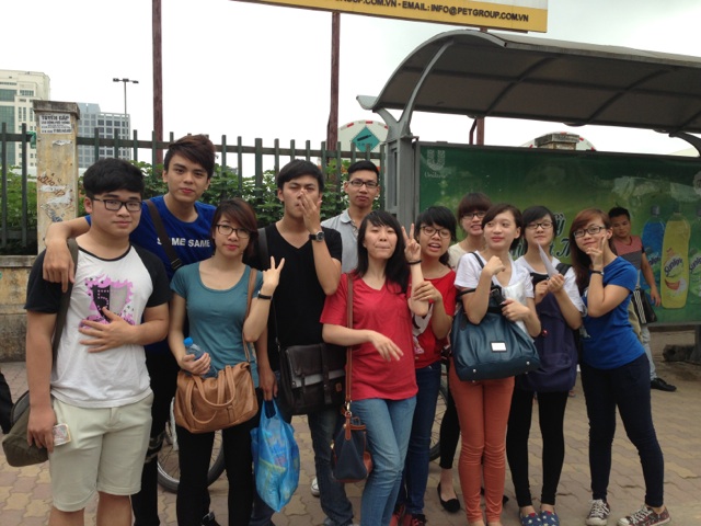 Tại điểm chờ xe bus trong ngày ra quân SV tình nguyện về Hoài Đức