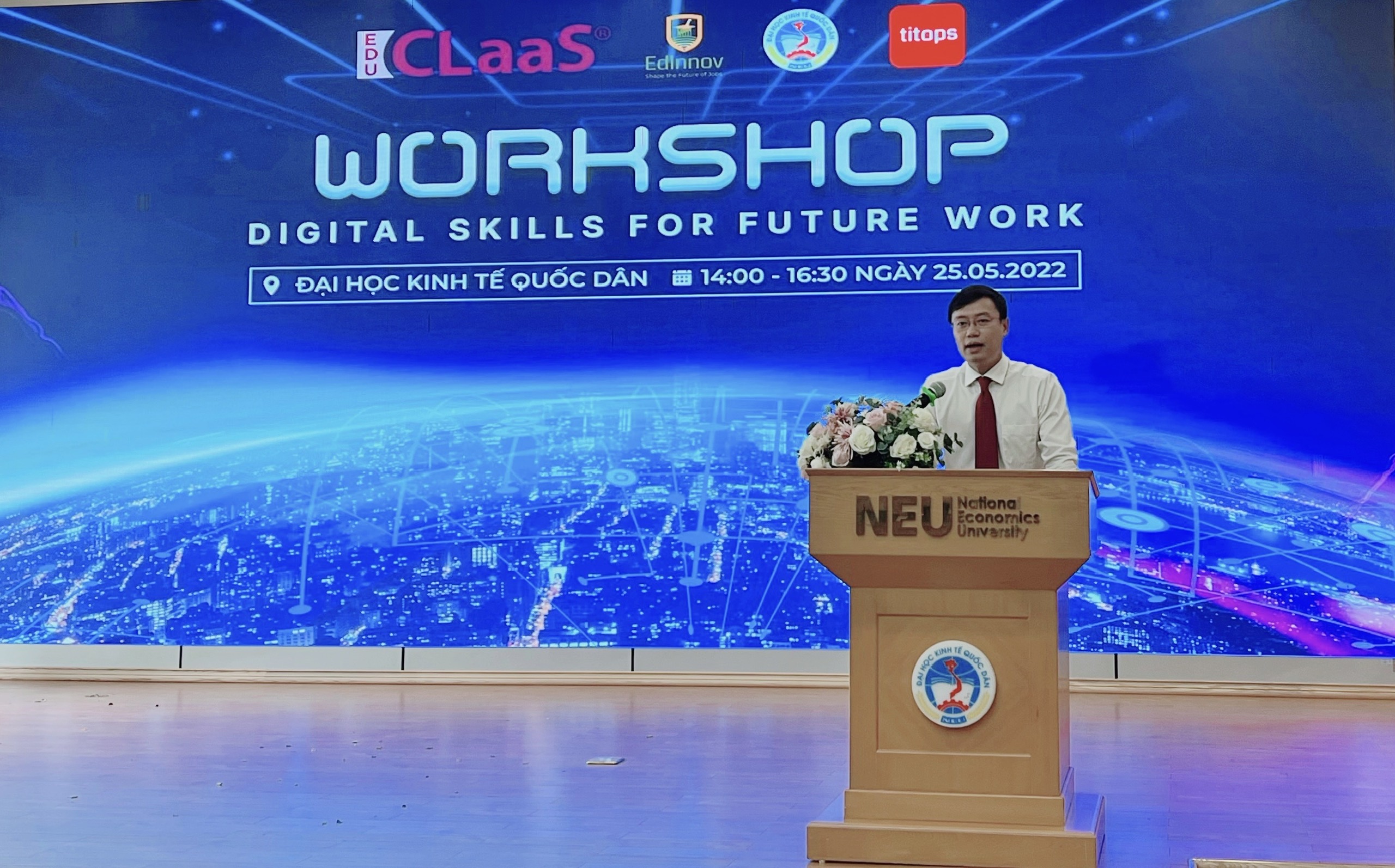 Chiều ngày 25/5/2022, Trường Đại học Kinh tế Quốc dân phối hợp với Tổ chức giáo dục EduClaaS và Công ty TNHH Titops tổ chức Hội thảo với chủ đề “Digital Skills for Future Work”.