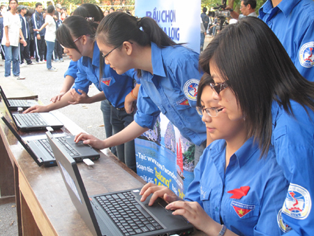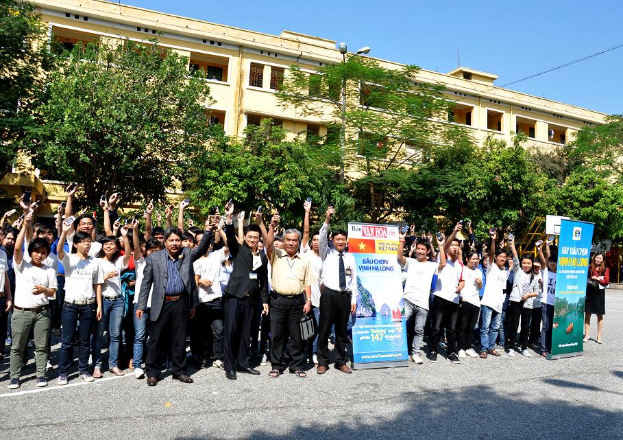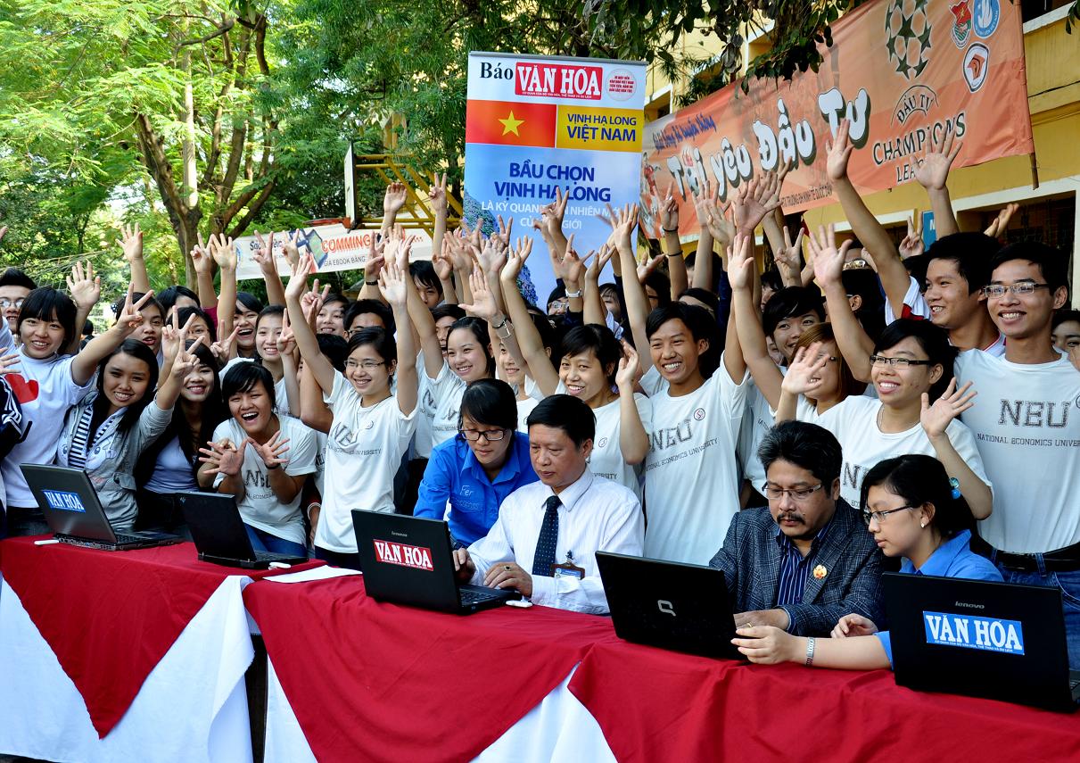 Hình ảnh sinh viên trường ĐH Kinh tế quốc dân tham gia bình chọn “Vịnh Hạ Long là kỳ quan thiên nhiên mới của thế giới”: