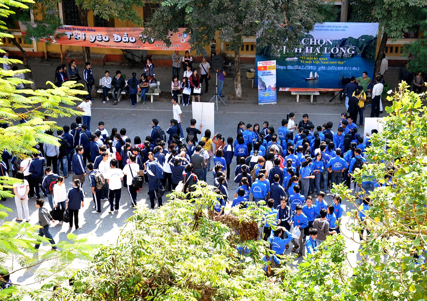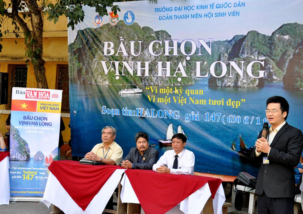 Thể hiện tình cảm với Vịnh Hạ Long, với đất nước, chưa đến giờ bình chọn, sân ký túc xá của trường ĐH Kinh tế quốc dân đã  rất náo nhiệt, rộn ràng. Sinh viên, nội, ngoại trú, kể cả những sinh viên đang giờ học môn giáo dục thể chất… như hút về đây để tham gia một việc làm rất quan trọng và ý nghĩa cho Việt Nam là “Bình chọn cho Vịnh Hạ Long là kỳ quan thiên nhiên mới của thế giới”.