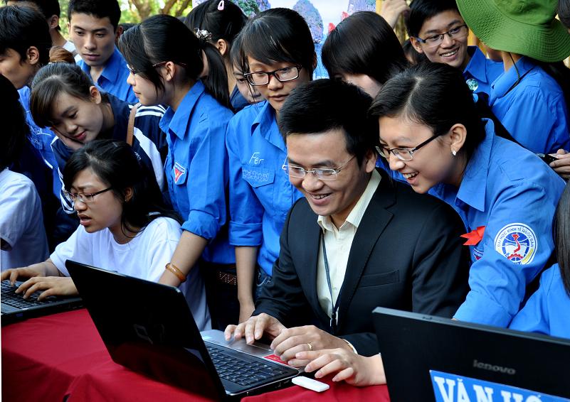 Phó Tổng biên tập báo Văn hoá, GS.TS Phan Công Nghĩa và sinh viên hào hứng bình chọn