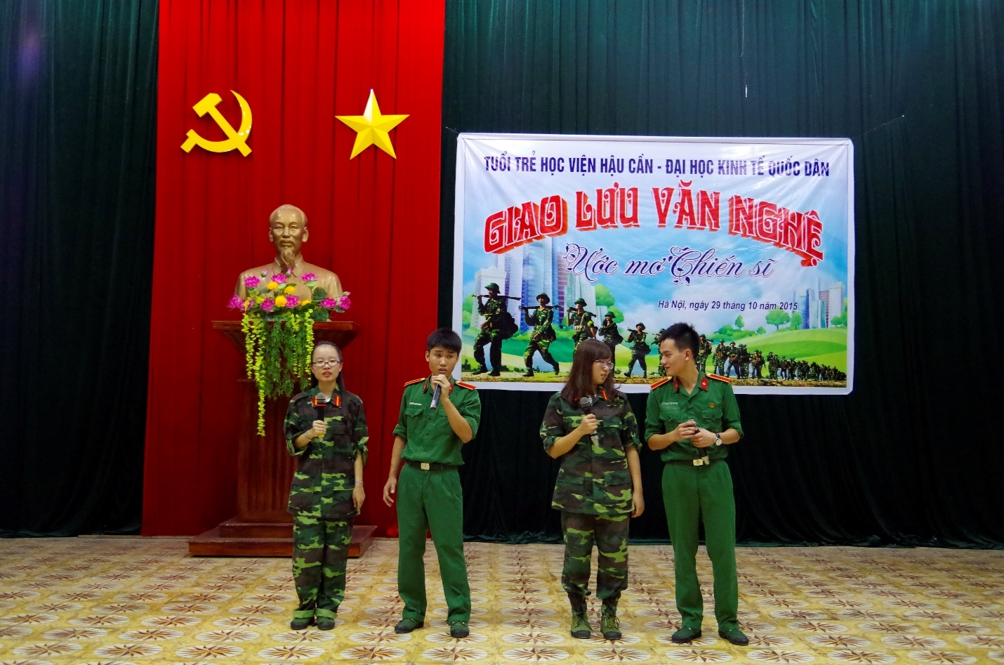 Sáng sớm, cổng trường Đại học Kinh tế Quốc dân náo nhiệt hơn ngày thường khi 104 “tân binh” khóa 7 chúng tôi sẽ tham gia Học kỳ quân đội 5 ngày trên Sơn Tây. Nói lời tạm biệt với làn khói bụi, tiếng còi xe ồn ã của Hà Nội tấp nập, ai ai cũng háo hức xen lẫn chút lo lắng, hồi hộp. Chúng tôi trò chuyện vui vẻ suốt chặng đường dài. Tất cả đều có những thắc mắc chưa có lời giải đáp. Kia rồi! Cổng trường Học viện Hậu cần đã hiện ra trước mắt chúng tôi. Ấn tượng đầu tiên đó là khung cảnh ngăn nắp, trang nghiêm tại nơi đây và chào đón chúng tôi là một bầu không khí trong lành, yên tĩnh mà rất đỗi thanh bình. EBBA chúng tôi được biên chế thành ba trung đội, mỗi trung đội có ba tiểu đội. Chịu trách nhiệm chung giảng dạy và quản lí là Trung tá- thầy Vũ Văn Trang.