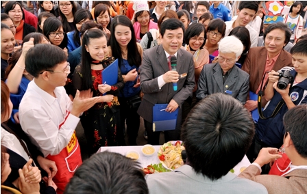 Trong bài phát biểu chào mừng, thay mặt lãnh đạo nhà trường, GS.TS. Phan Công Nghĩa – Phó Hiệu trưởng đã biểu dương những thành tích của chị em toàn trường đã luôn nỗ lực, sáng tạo hoàn thành tốt mọi nhiệm vụ được giao; đồng thời Giáo sư cũng đánh giá cao “sáng kiến vĩ đại” – đó là việc tổ chức ngày hội “Chia sẻ cùng chị em” – đó là cuộc thi nấu ăn giữa các “đầu bếp” nam đến từ các đơn vị trong trường. Đây là lần đầu tiên có sự tham gia của 100 “đầu bếp”, trong đó có tới 60 người đàn ông đại diện của 50 đơn vị trong toàn trường – một sân chơi thú vị và có ý nghĩa vô cùng to lớn đối với phụ nữ trong trường nhằm động viên và khuyến khích chị em tiếp tục sáng tạo và thành công trong sự nghiệp và luôn thắp sáng ngọn lửa hạnh phúc trong cuộc sống.